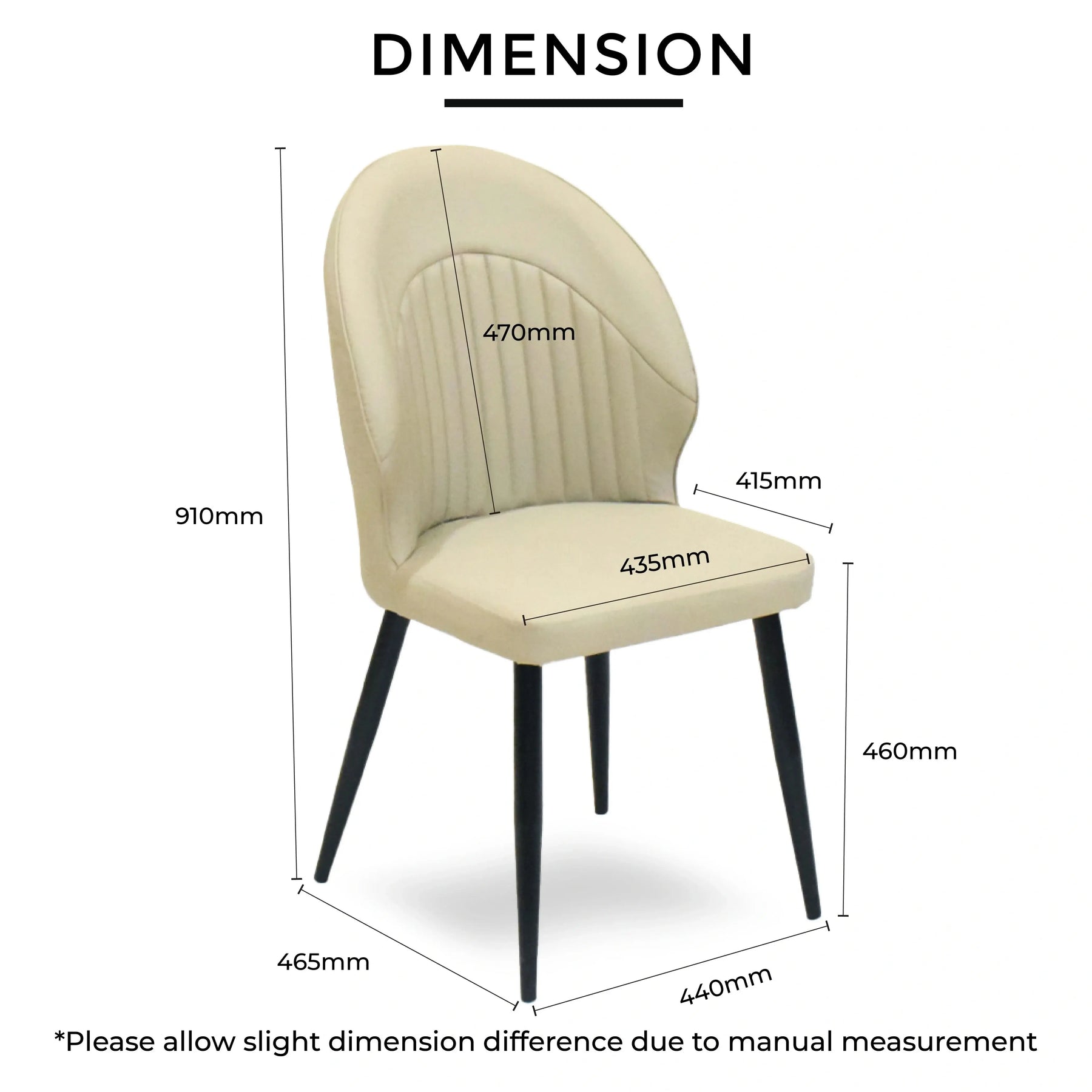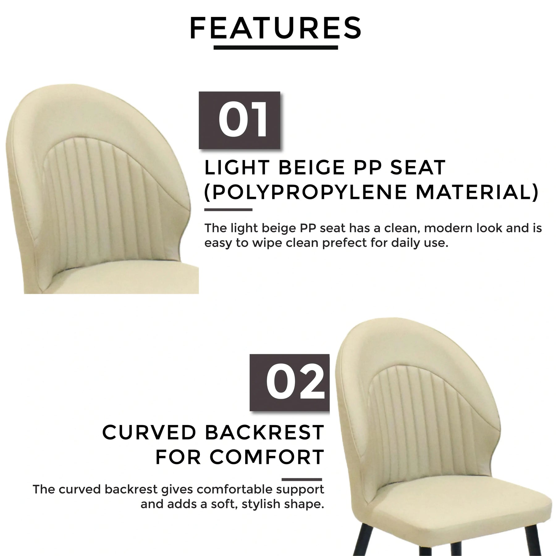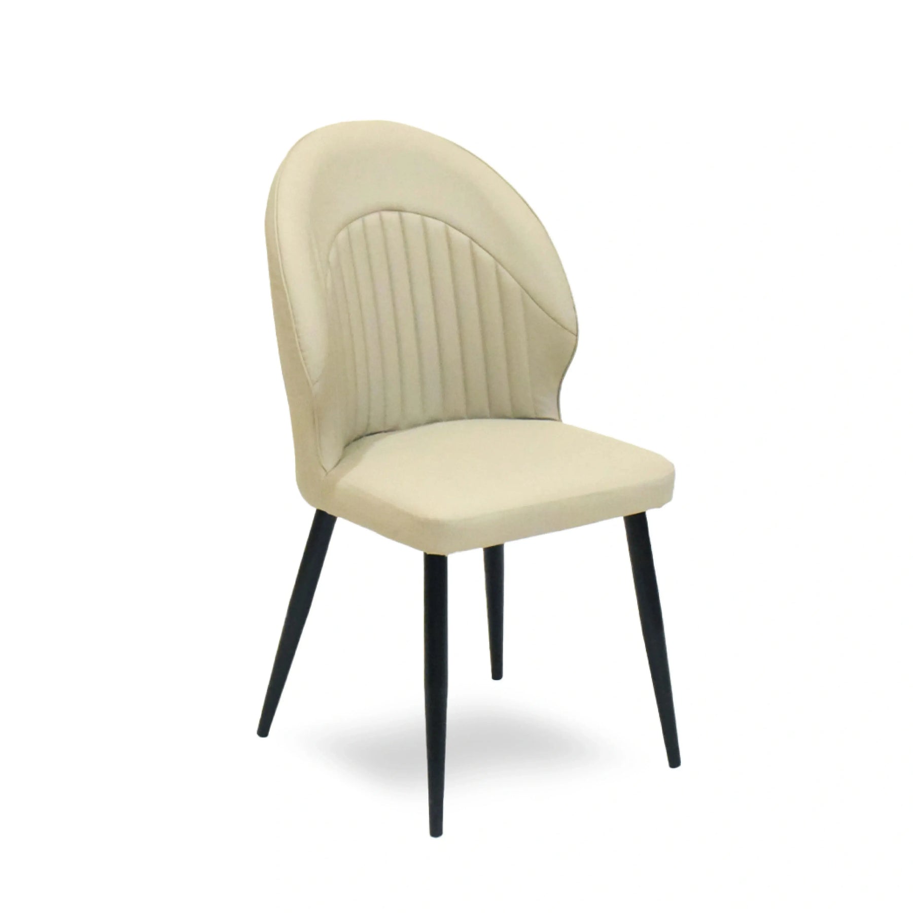 Beige PU leather dining chair with curved backrest, cushioned seat, and slim black metal legs for modern dining interiors.