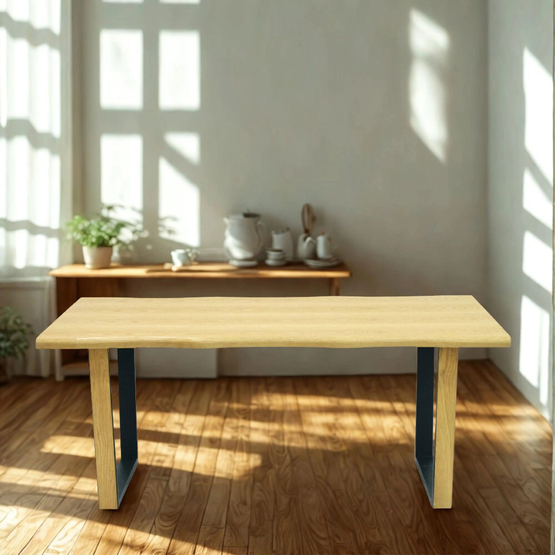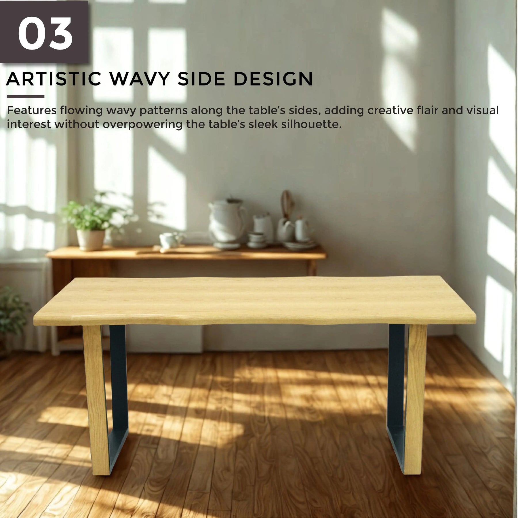 The HILANI Dining Table blends natural beauty with modern functionality. Its wood veneer top highlights warm, organic tones while the clean edges and smooth surface make it versatile for various décor styles. The wavy edge detailing introduces a subtle artistic flair, ensuring the table looks elegant in both casual and formal settings.