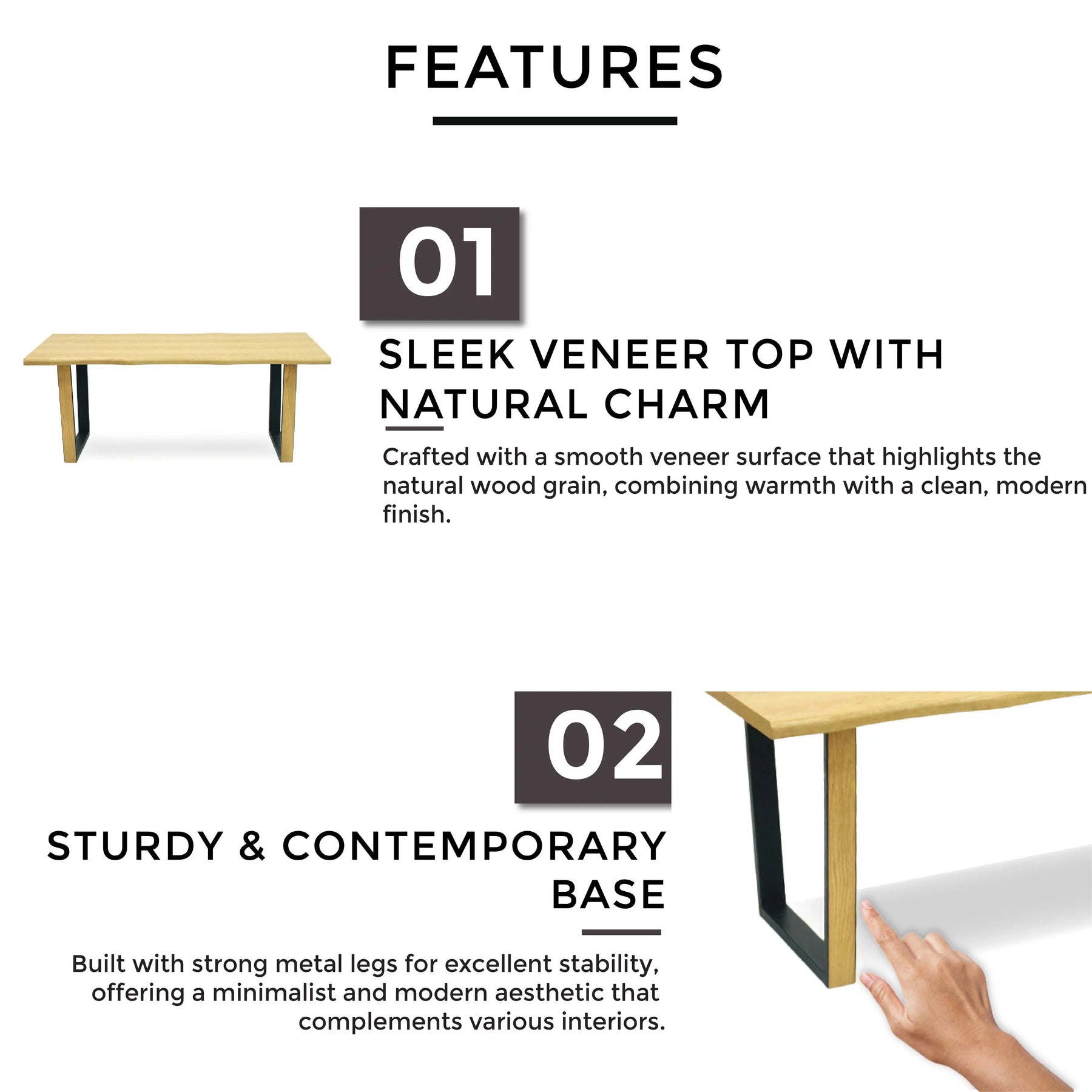 Built with a sturdy metal frame, this table is designed to withstand daily use. The combination of wood veneer and metal ensures both durability and easy maintenance, giving you a reliable surface that stays stylish and strong over time.