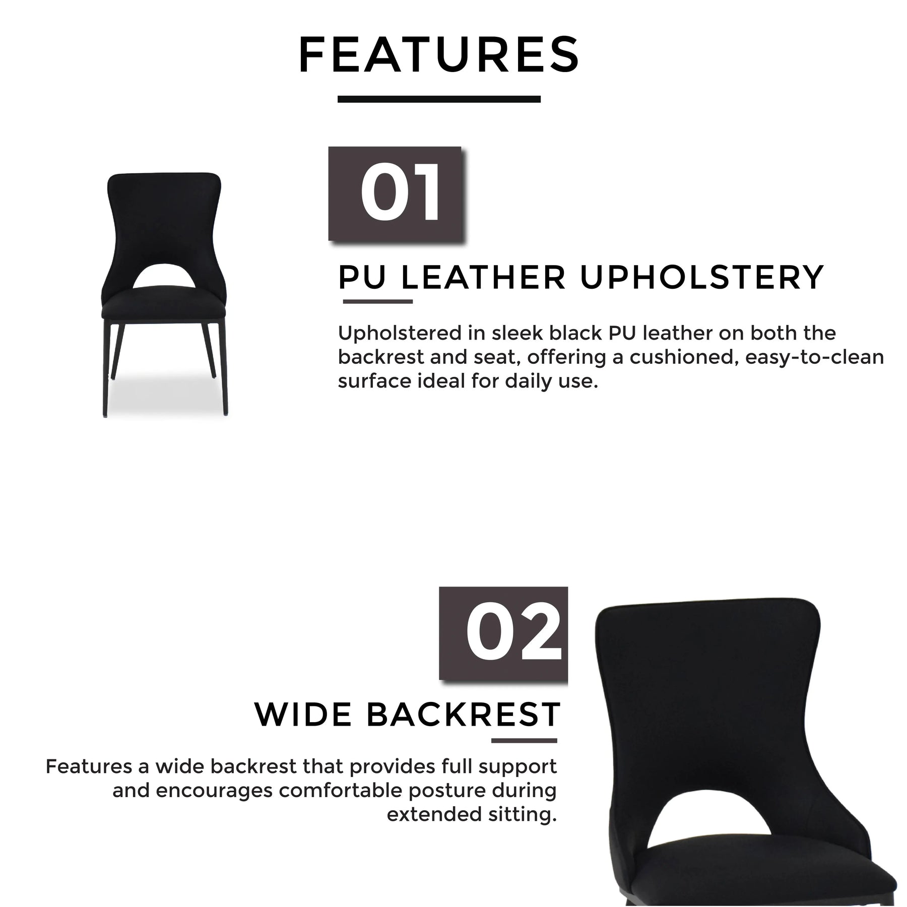 - The KENNY Dining Chair is finished in sleek black PU leather, offering a cushioned surface that is both stylish and easy to maintain