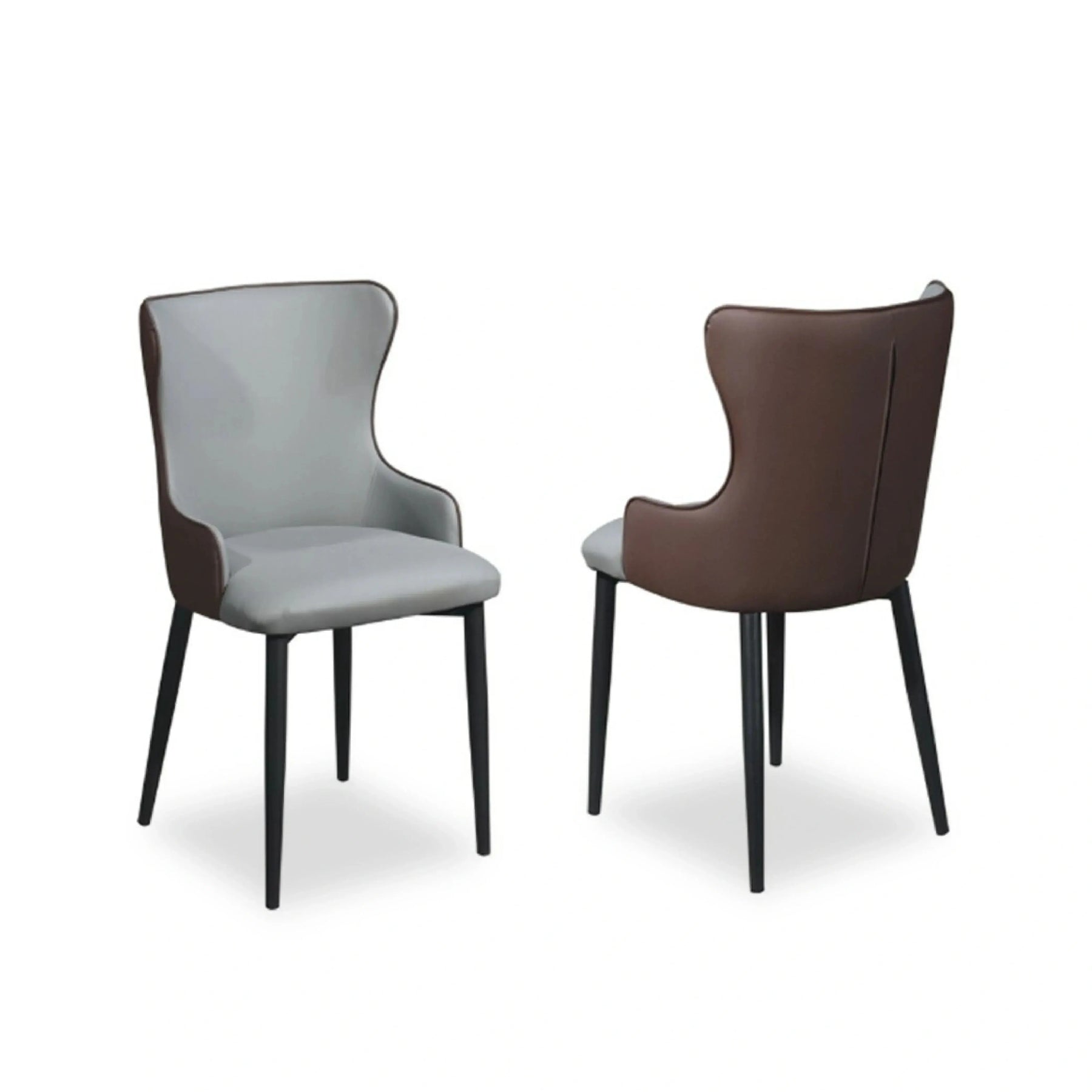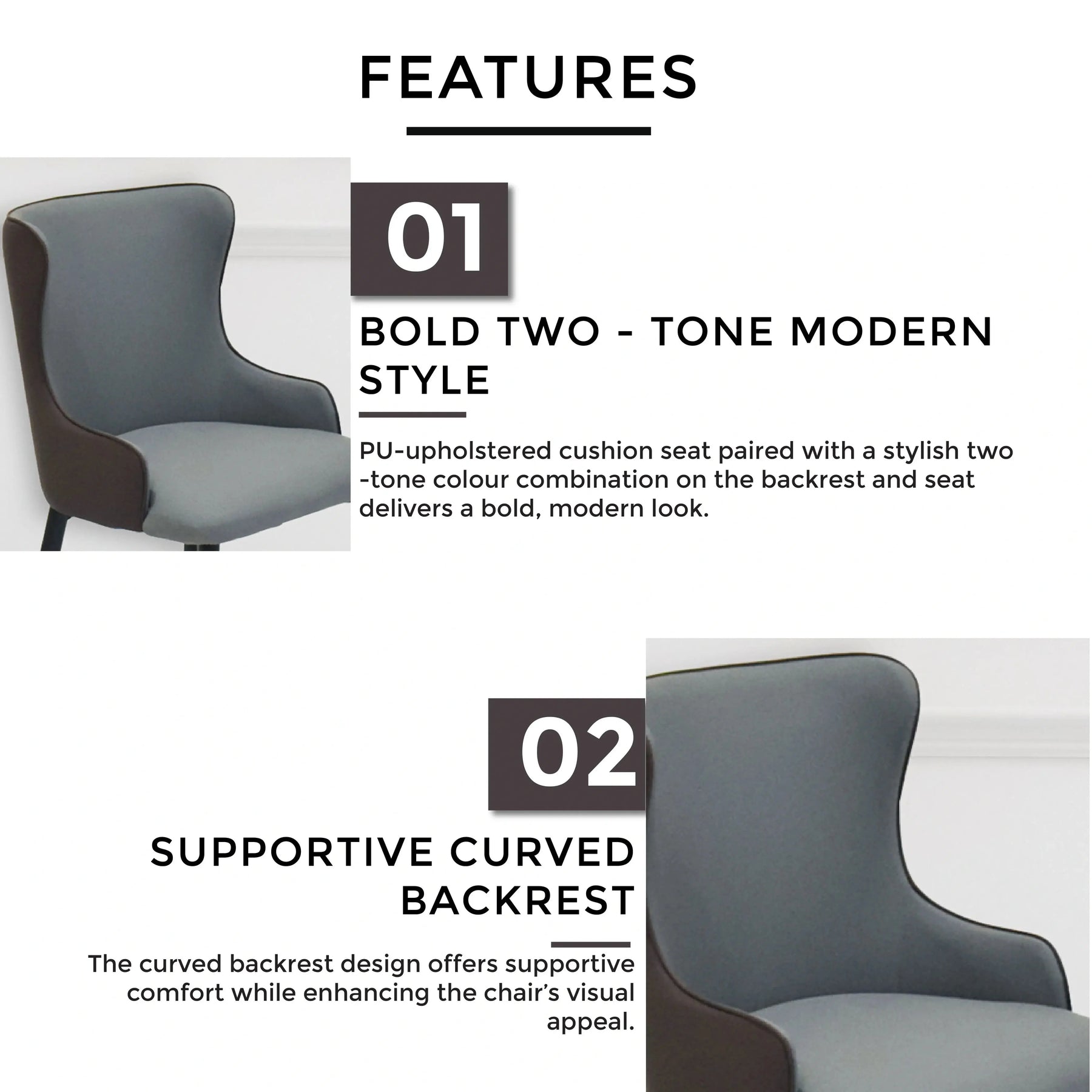 - The LAMAR Dining Chair features a PU-upholstered cushion seat with a stylish two-tone grey and brown finish for a bold, modern look