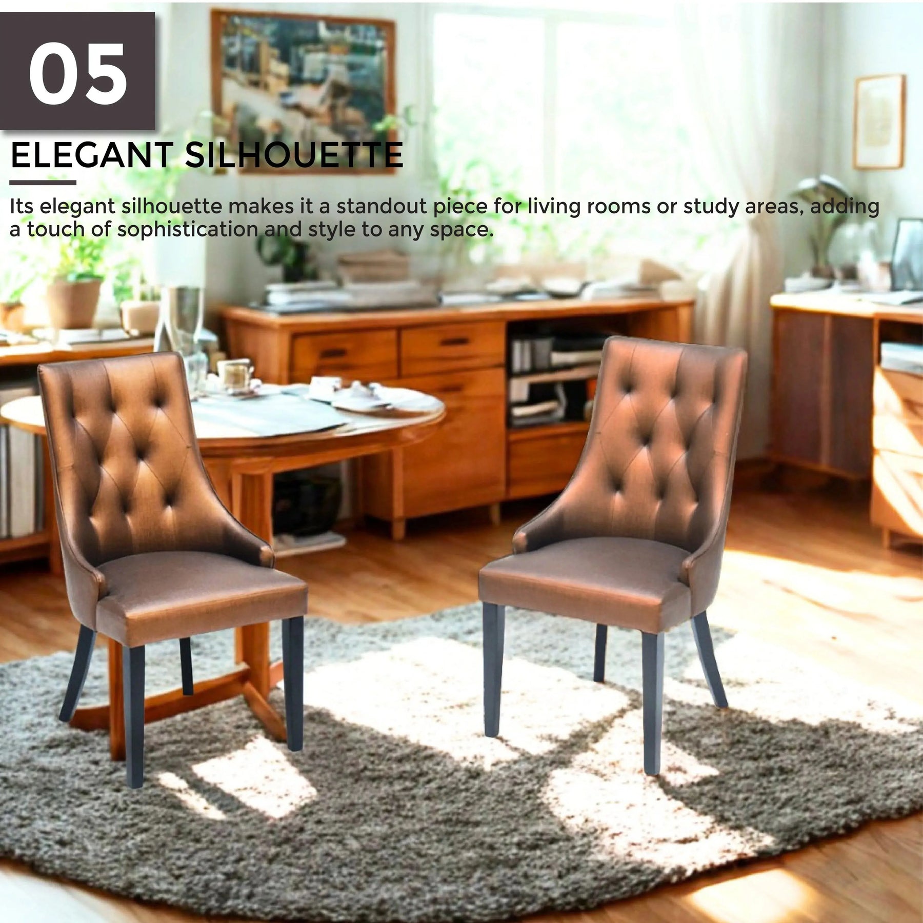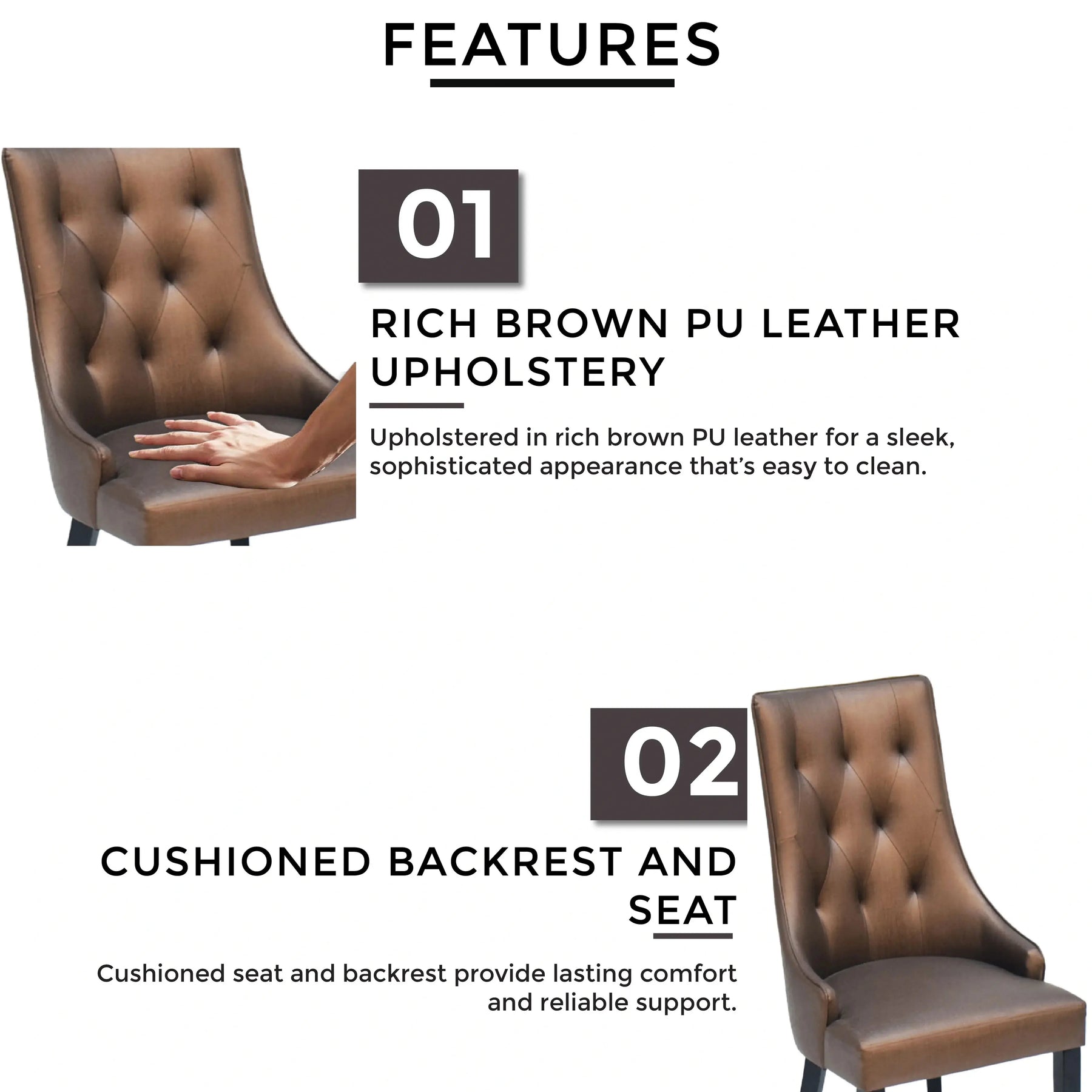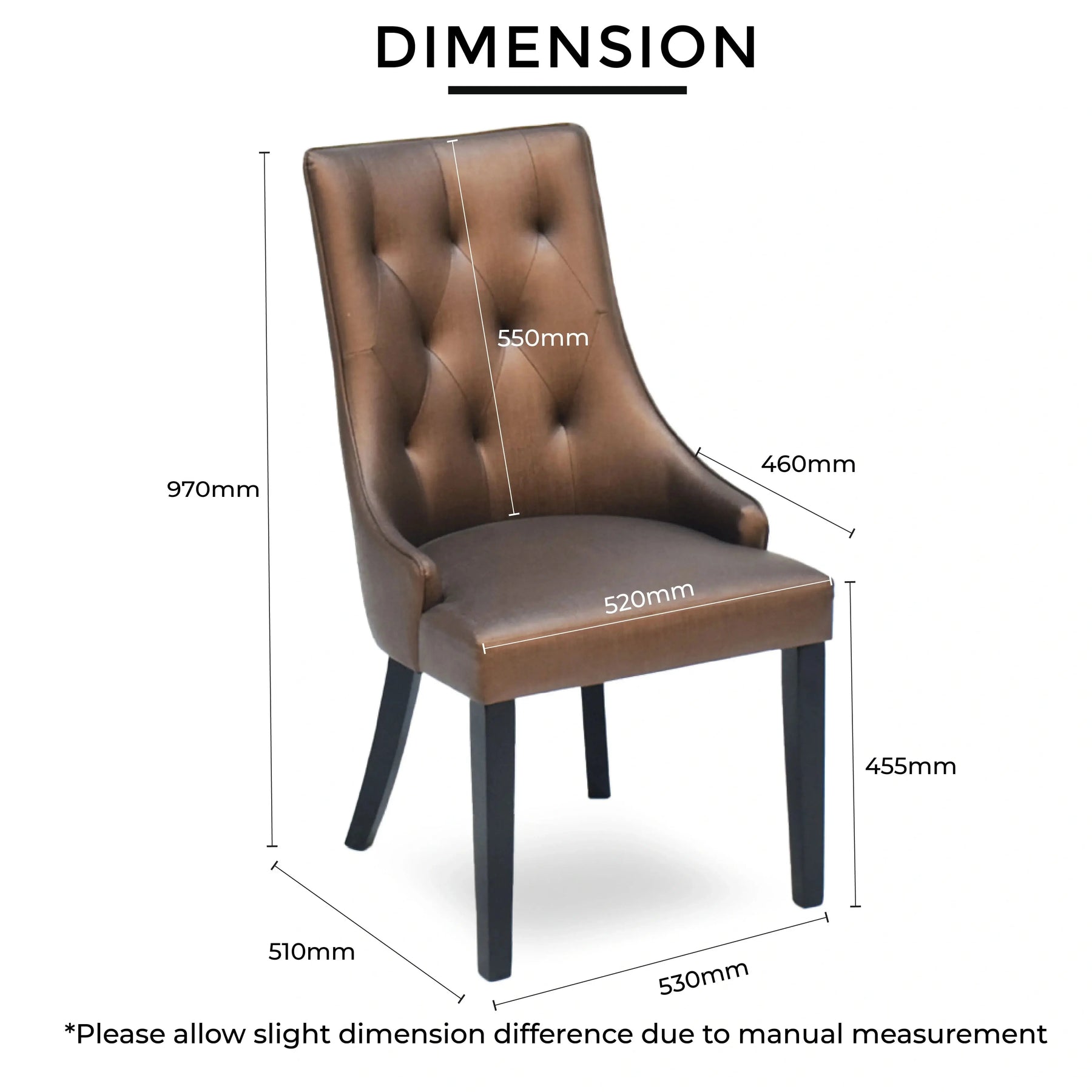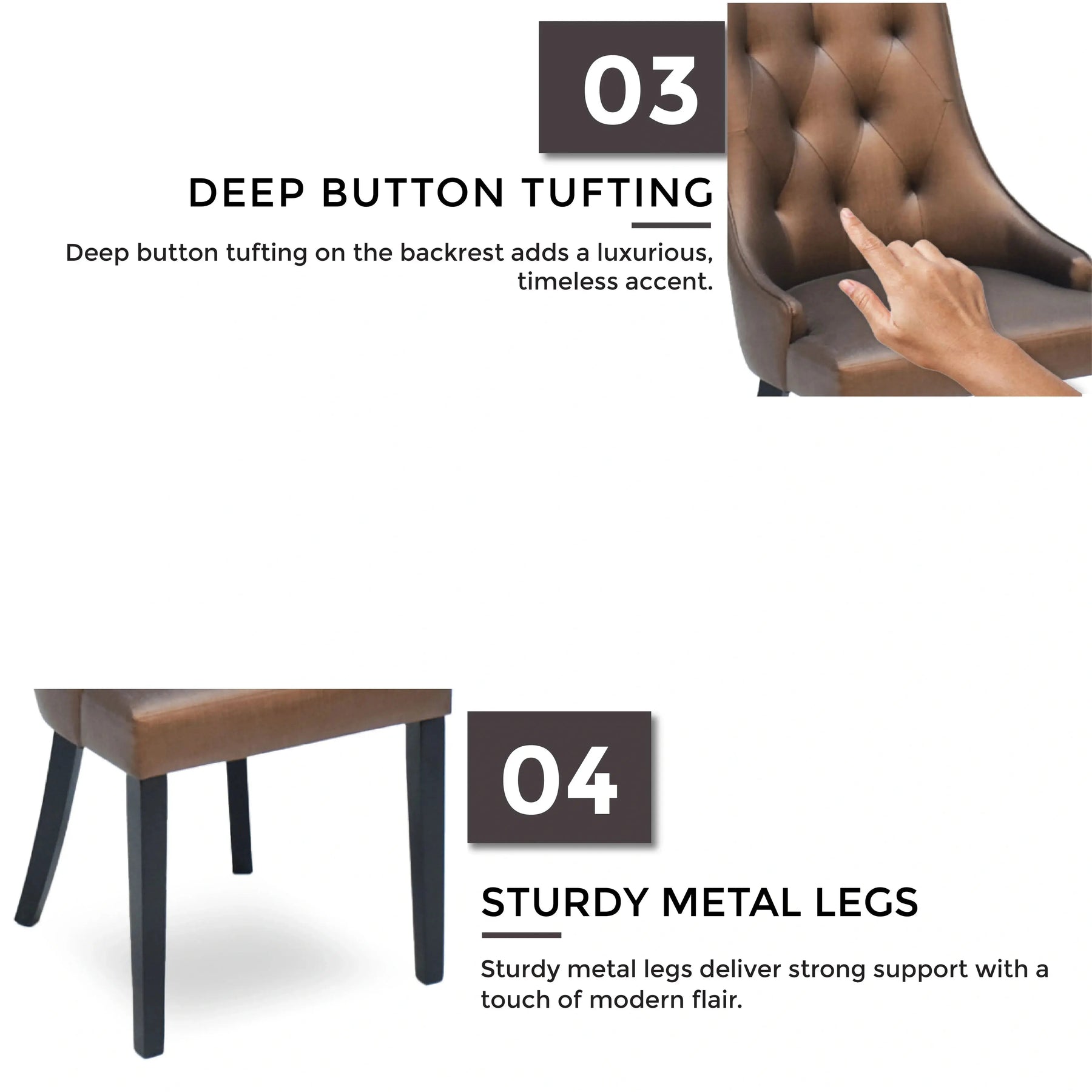 - The QUEEN Dining Chair is upholstered in premium PU leather, offering a smooth, easy-to-clean finish and modern durability