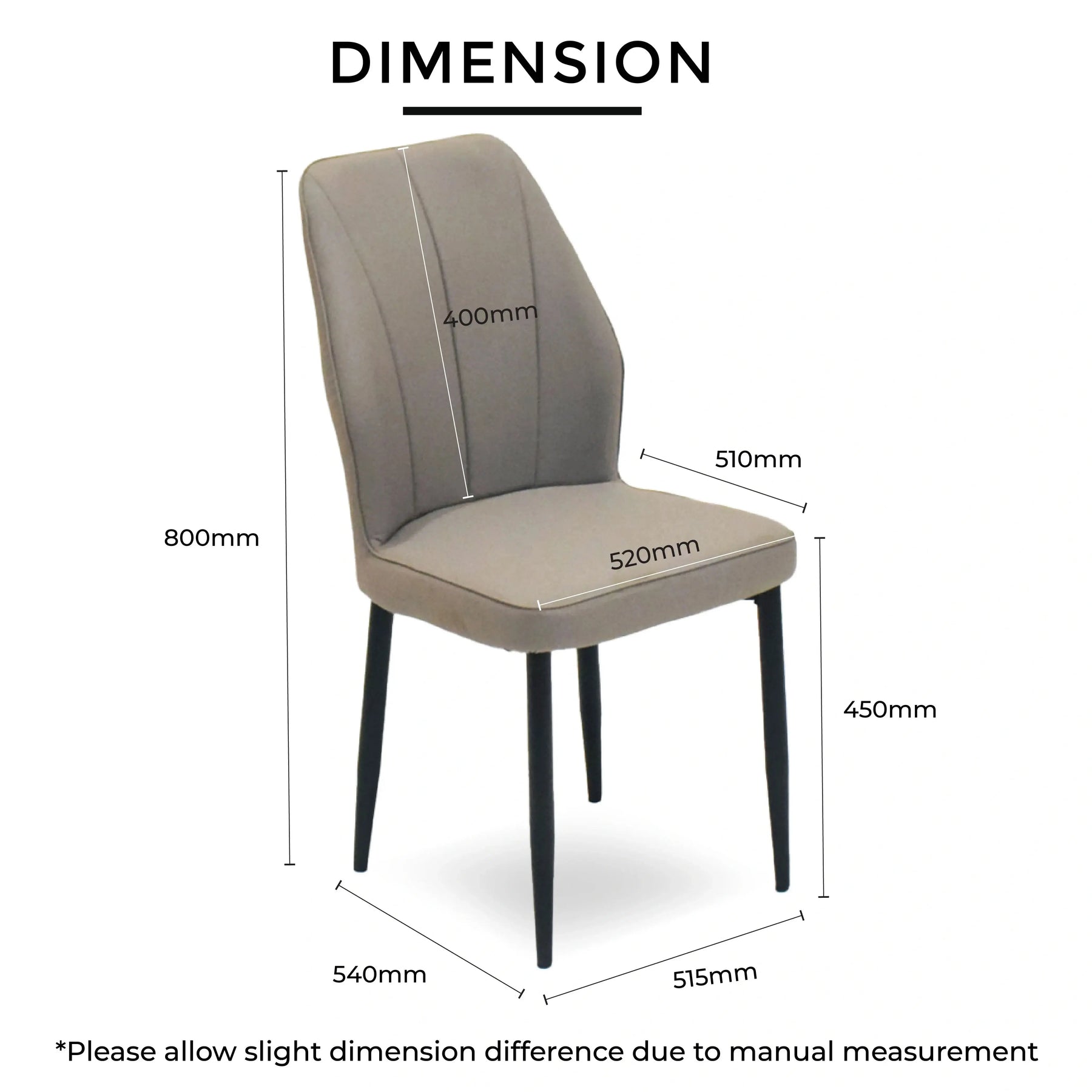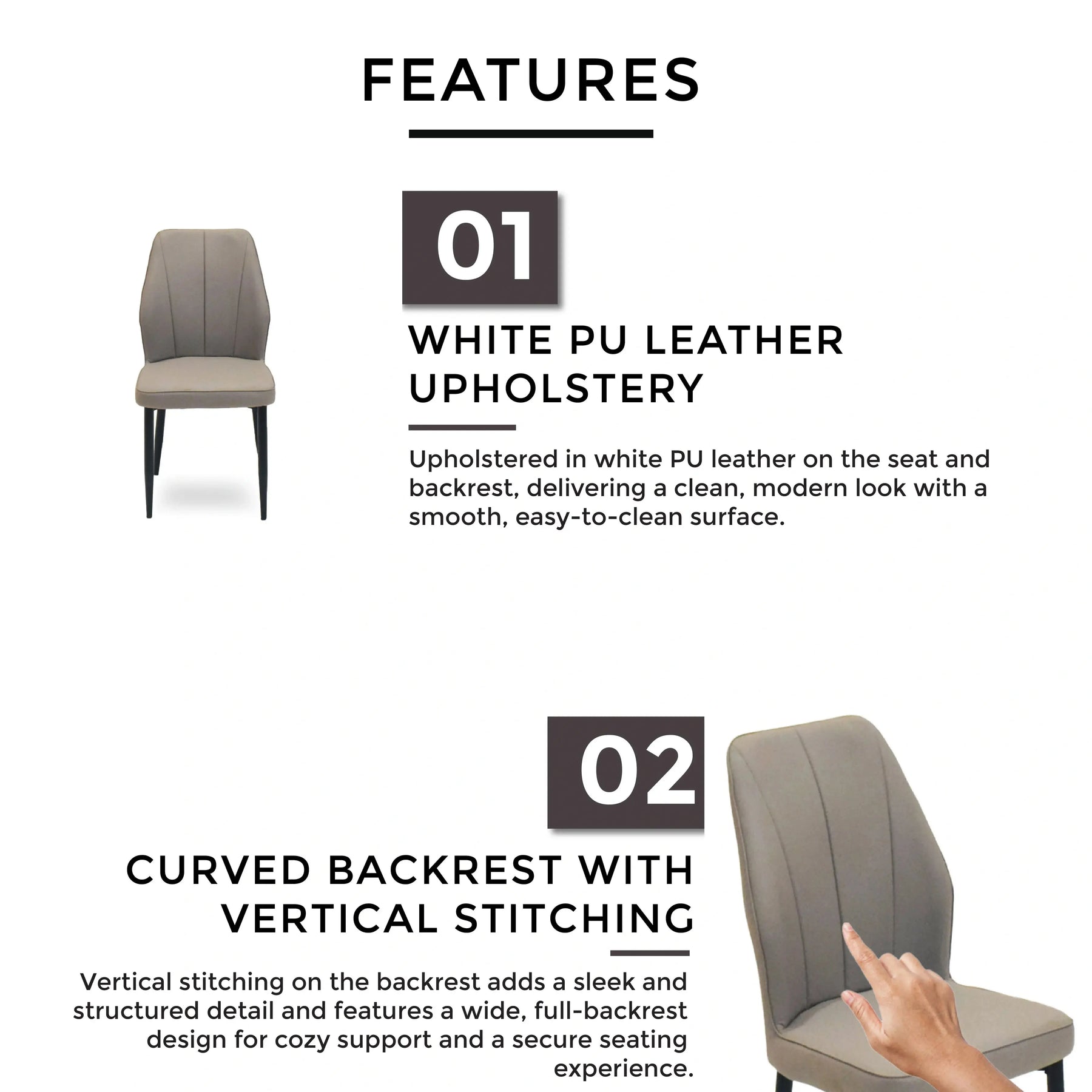 Built with sturdy metal legs, this chair provides reliable support and long-lasting stability. The PU leather upholstery is easy to clean and maintain, making it ideal for households with kids or frequent gatherings. With its balance of comfort, strength, and elegance, the RAVE Dining Chair is both a practical and stylish investment.