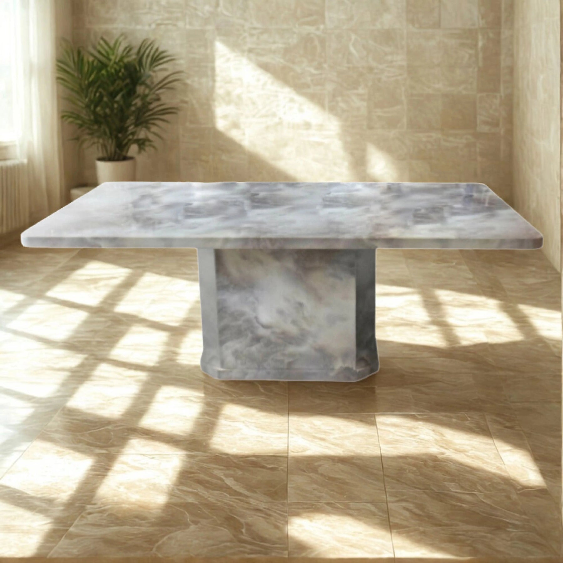 The REVA Marble Dining Table stands out with its cloudy-grey marble top and smooth polished finish, giving every dining room a refined, modern atmosphere. Its unique natural swirls make it a one-of-a-kind centerpiece that blends seamlessly into both contemporary and luxury interiors.