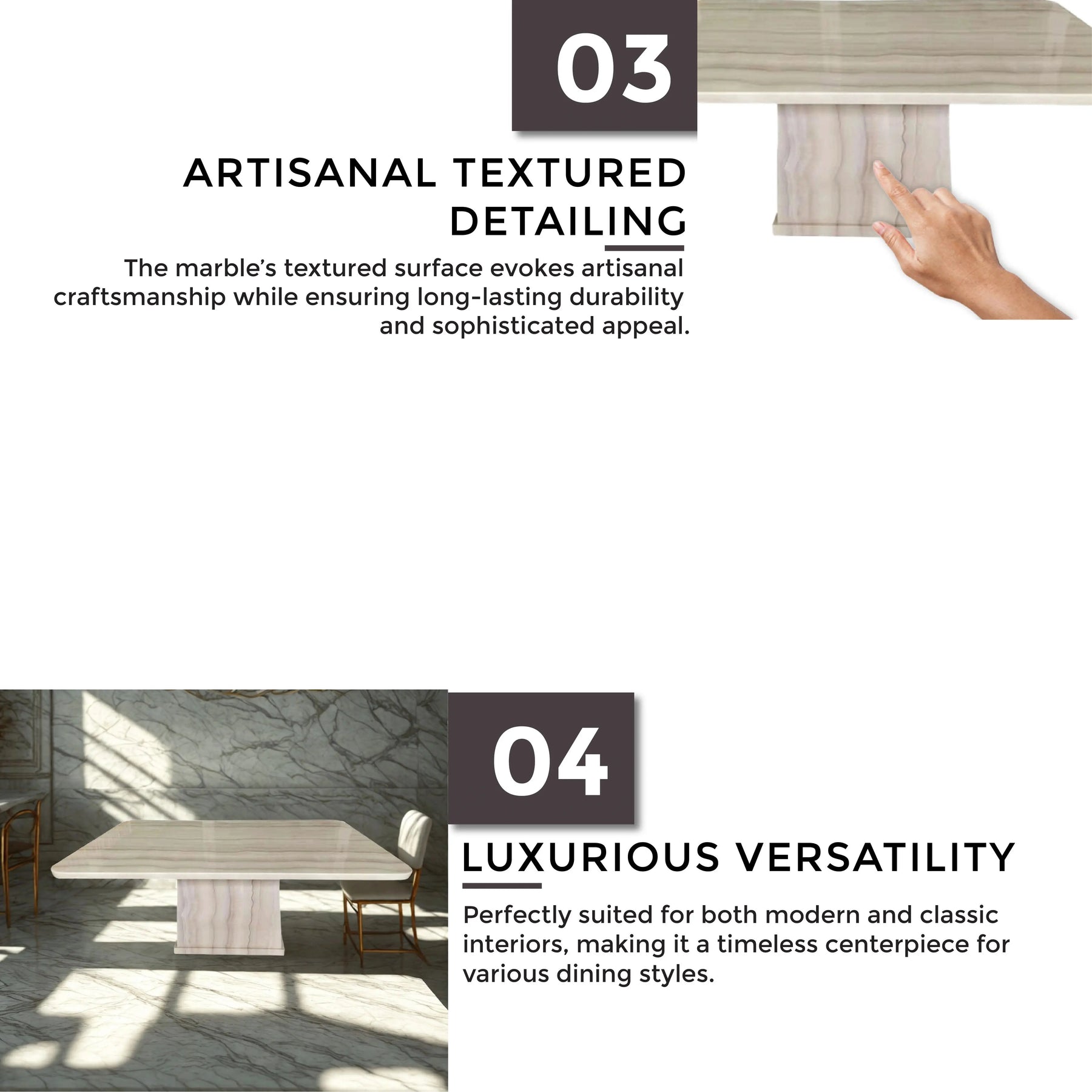 Crafted from premium marble with a durable artificial textured finish, the BRINEA table offers lasting strength and resilience. The solid pedestal base ensures stability, while the textured surface enhances both style and practicality, resisting wear for years of use.