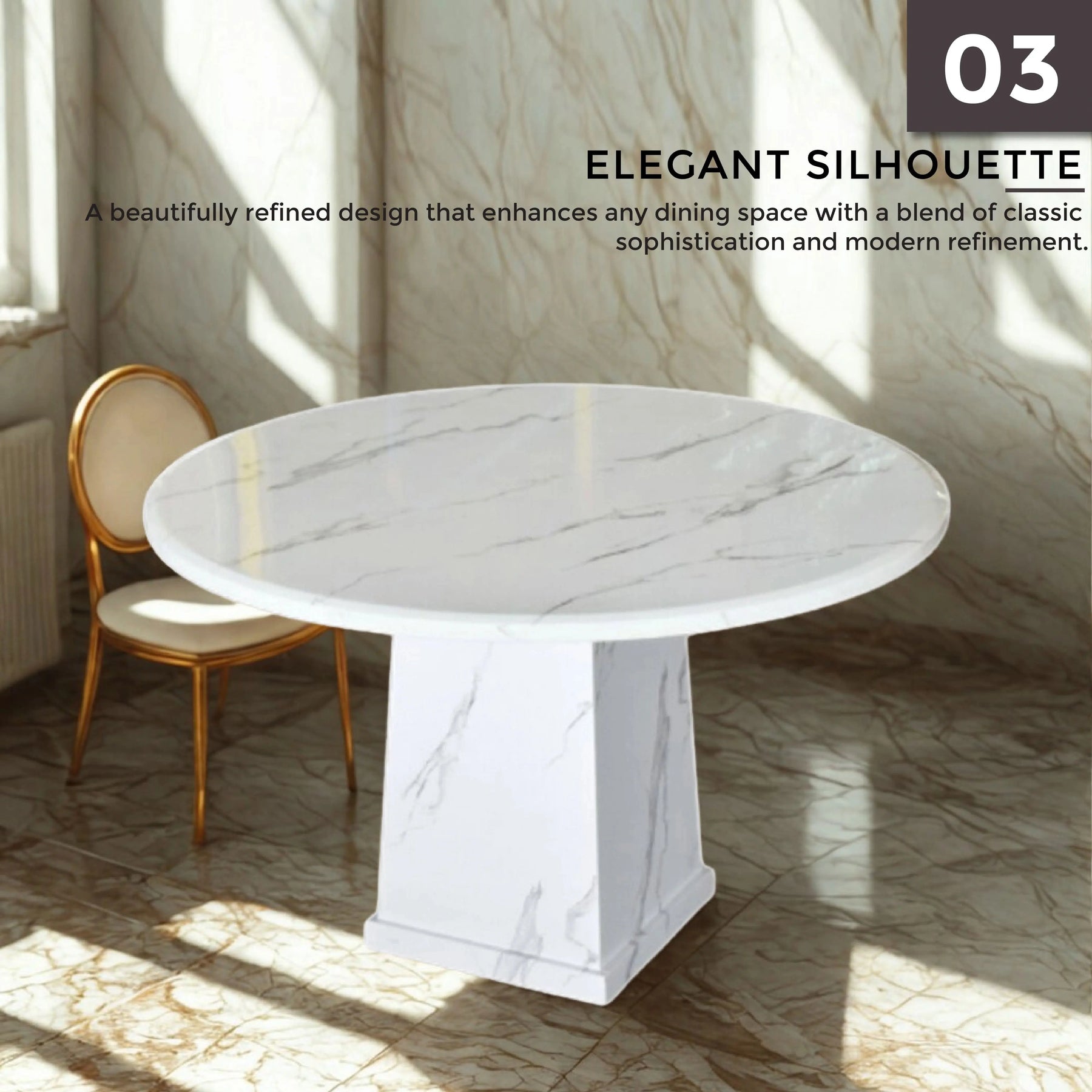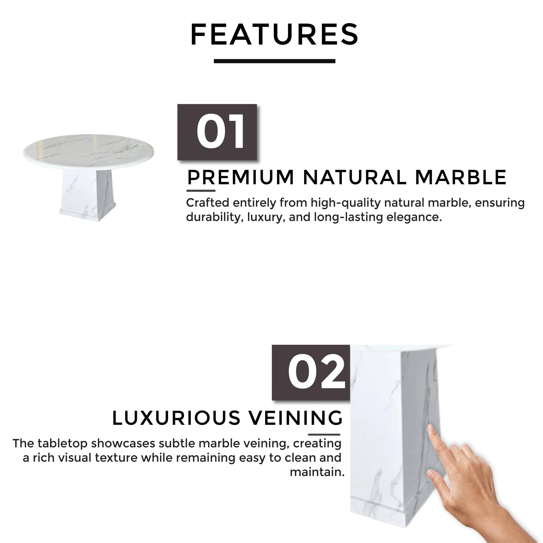 - The CLEA Marble Dining Table features a premium natural marble top with soft, elegant veining that elevates any dining space with timeless charm