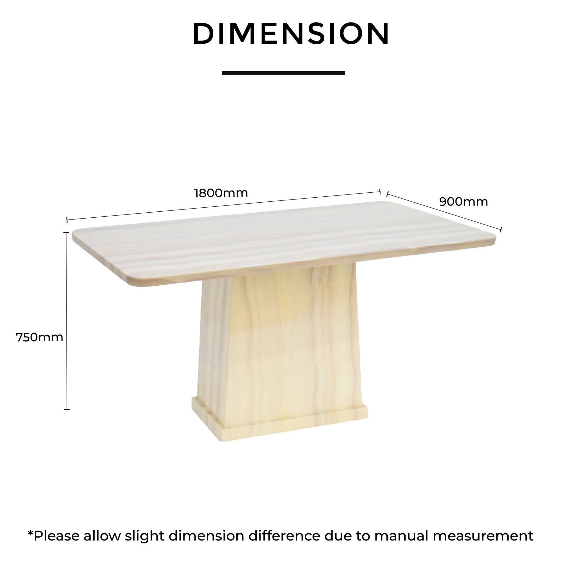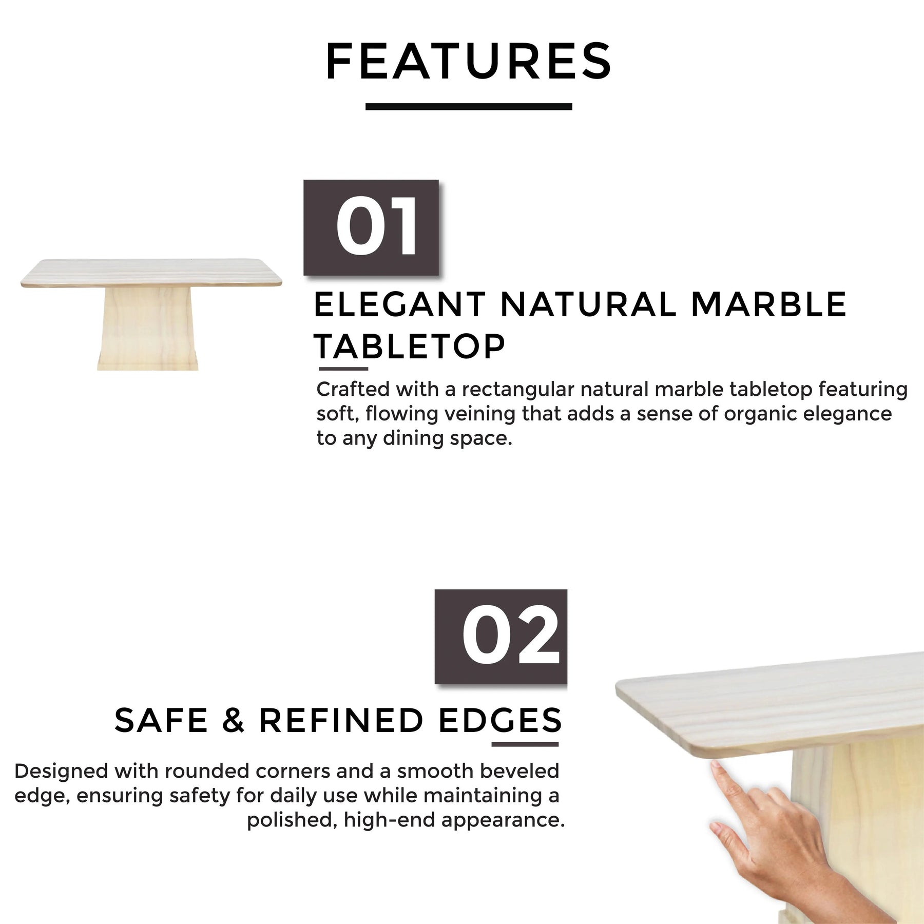 Crafted with natural marble, the tabletop is designed for longevity while showcasing unique patterns that make every piece one of a kind. The solid pedestal base, enhanced with an artificial marble texture, balances strength with elegance, ensuring both durability and style.