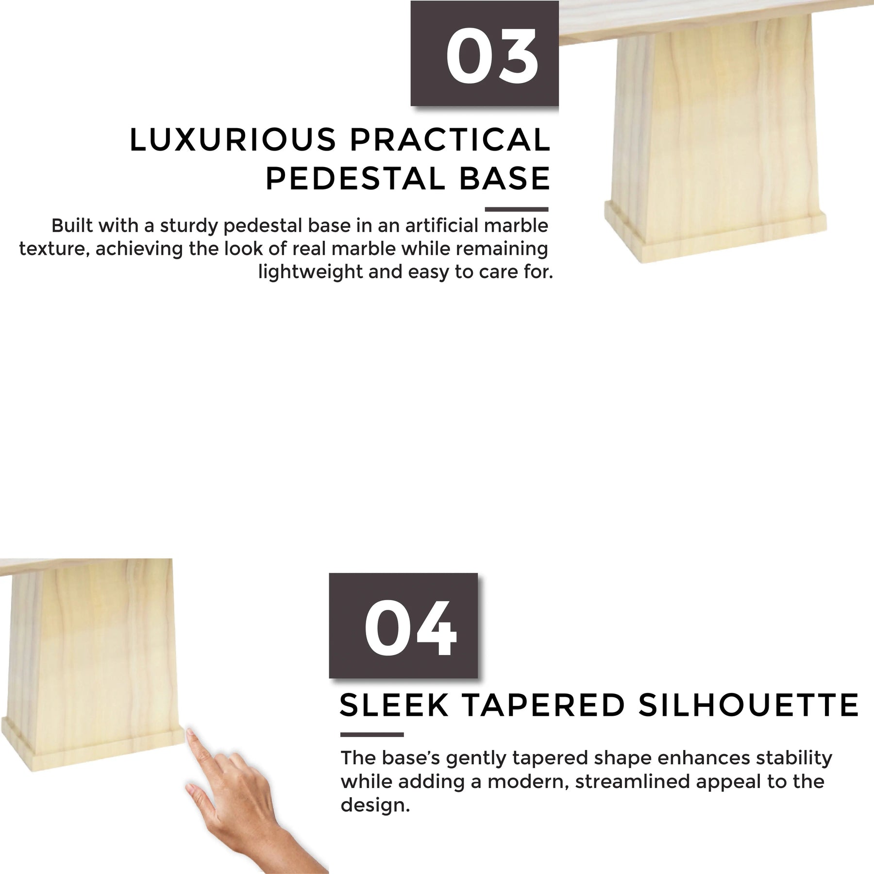 - A sturdy pedestal base with artificial marble texture delivers a lightweight yet luxurious look