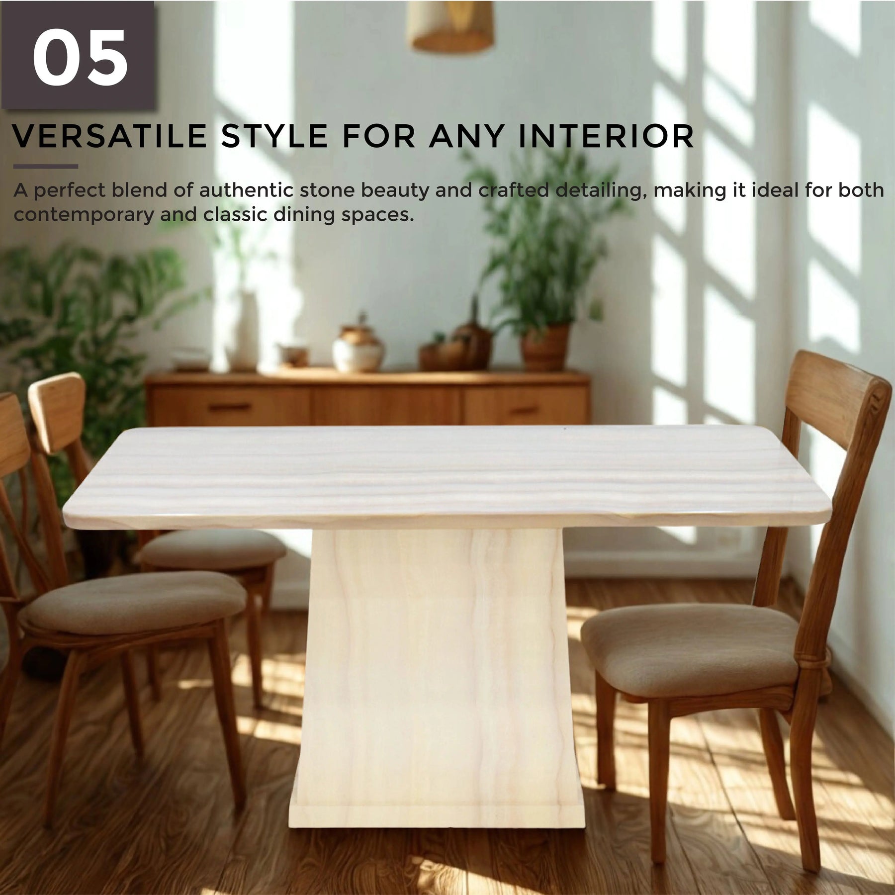 The HOOVER Marble Dining Table brings understated luxury to your dining room. With its soft veining and smooth rectangular surface, this table pairs beautifully with both modern and classic interiors. Its versatile tones and refined craftsmanship make it a stylish addition that elevates everyday dining as well as formal occasions.
