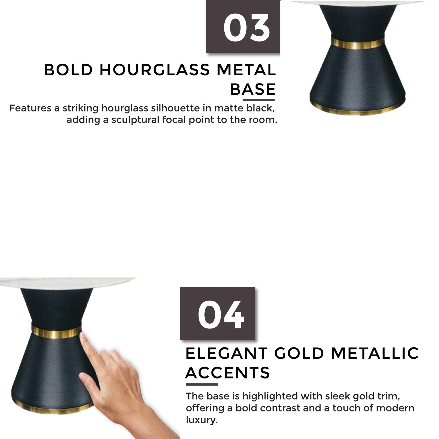 KAELLA Marble Dining Table with bold hourglass-shaped black metal base and elegant gold metallic trim for contemporary interiors - Td Furniture