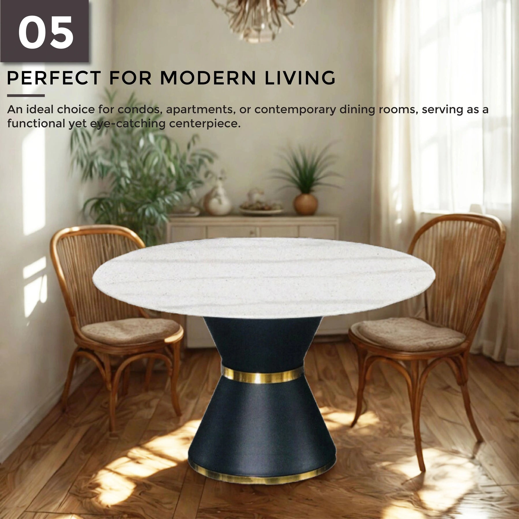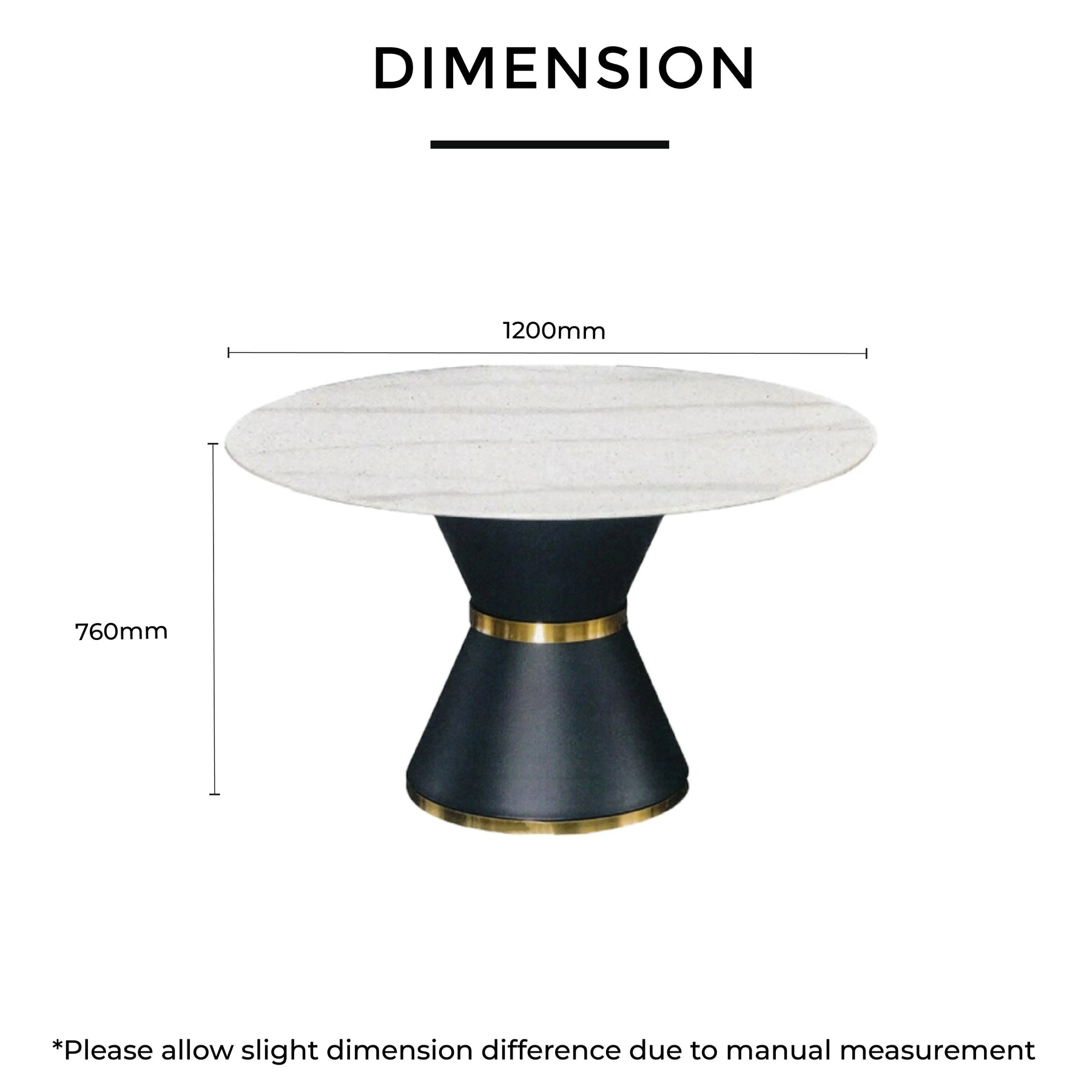 KAELLA Marble Dining Table dimensions round 1200mm sintered stone top, 760mm height, compact size for modern dining rooms - Td Furniture