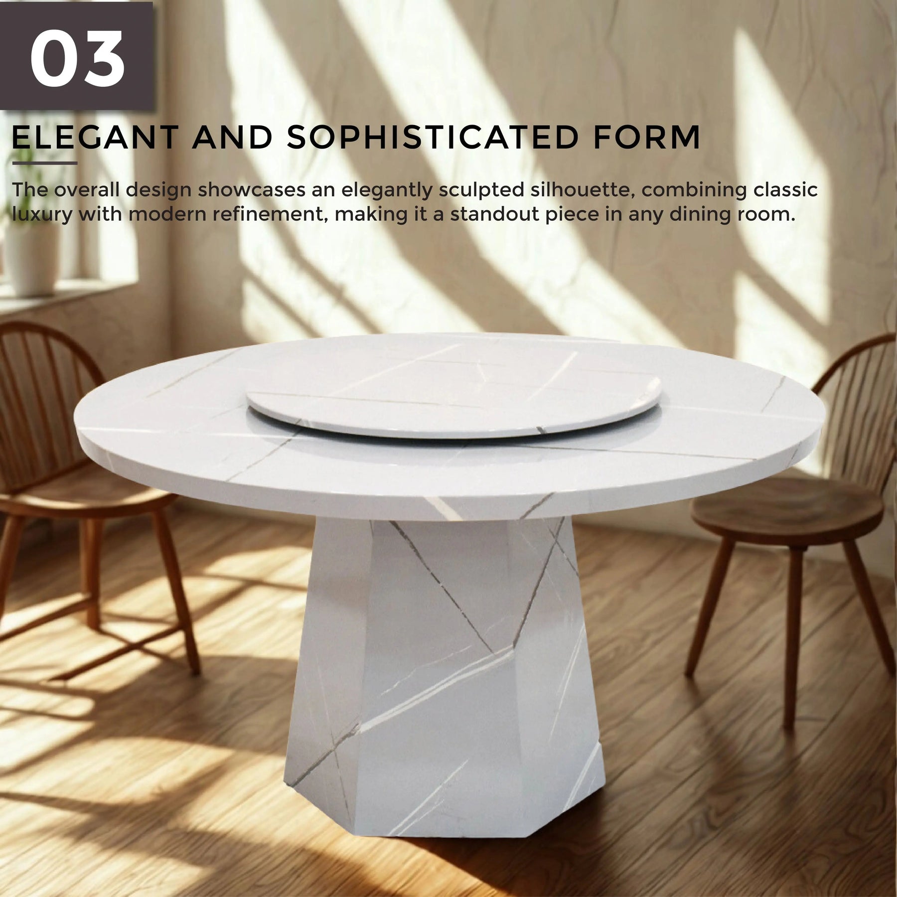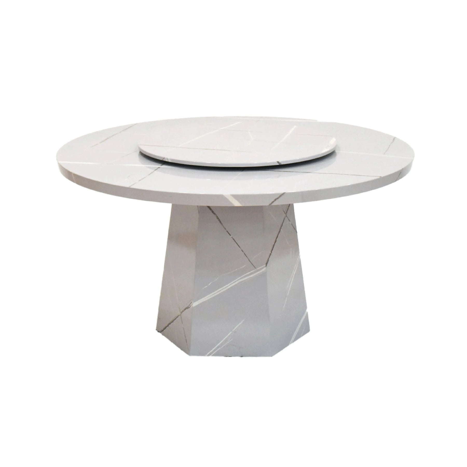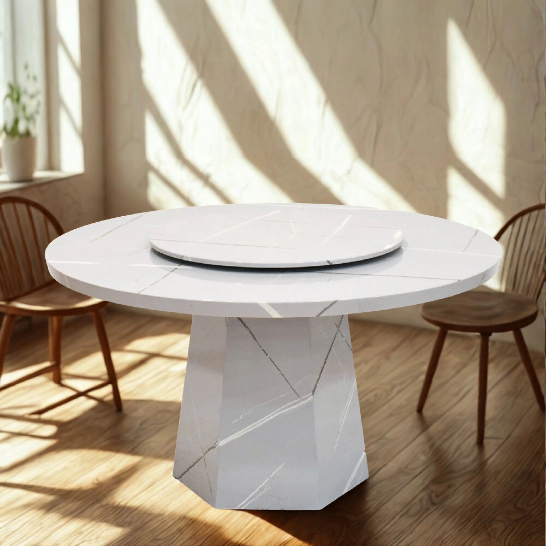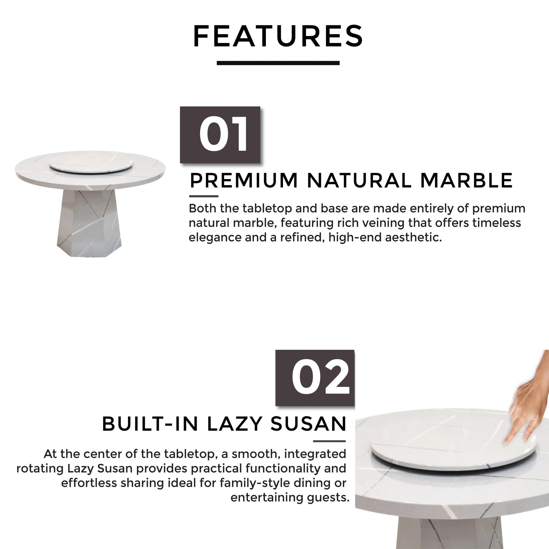 PIXY Marble Dining Table with natural marble top, elegant veining, and Lazy Susan - TD Furniture
