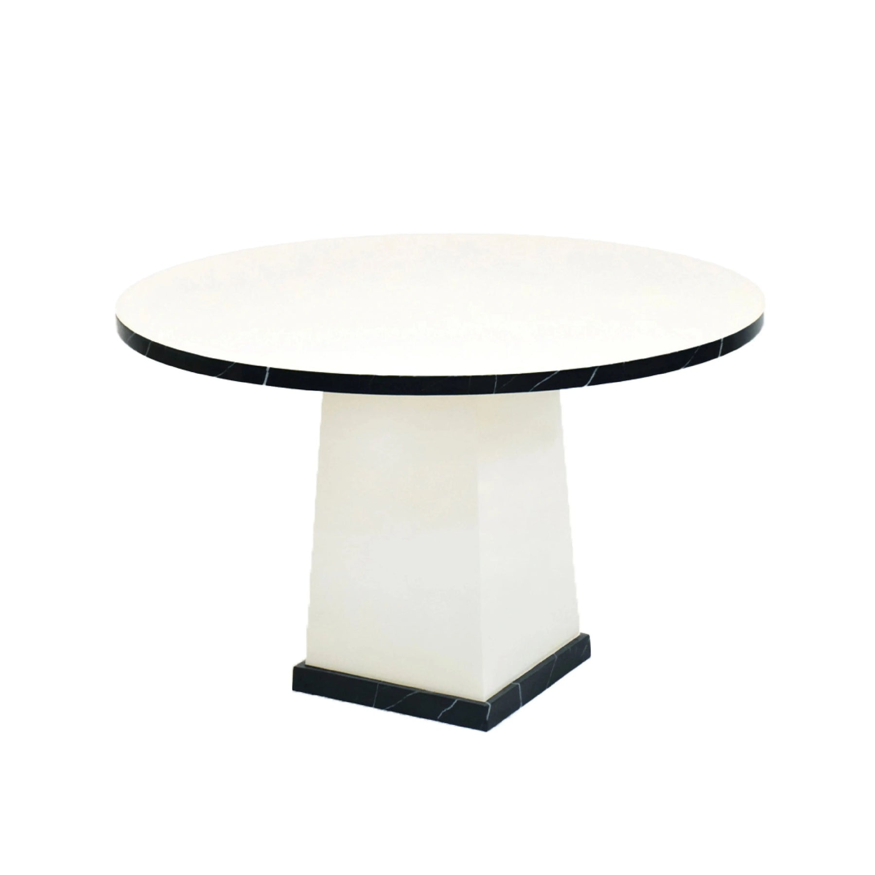 SYLVIA Marble Dining Table with sturdy geometric pedestal base and contrasting black marble trim for durability and modern style - Td Furniture