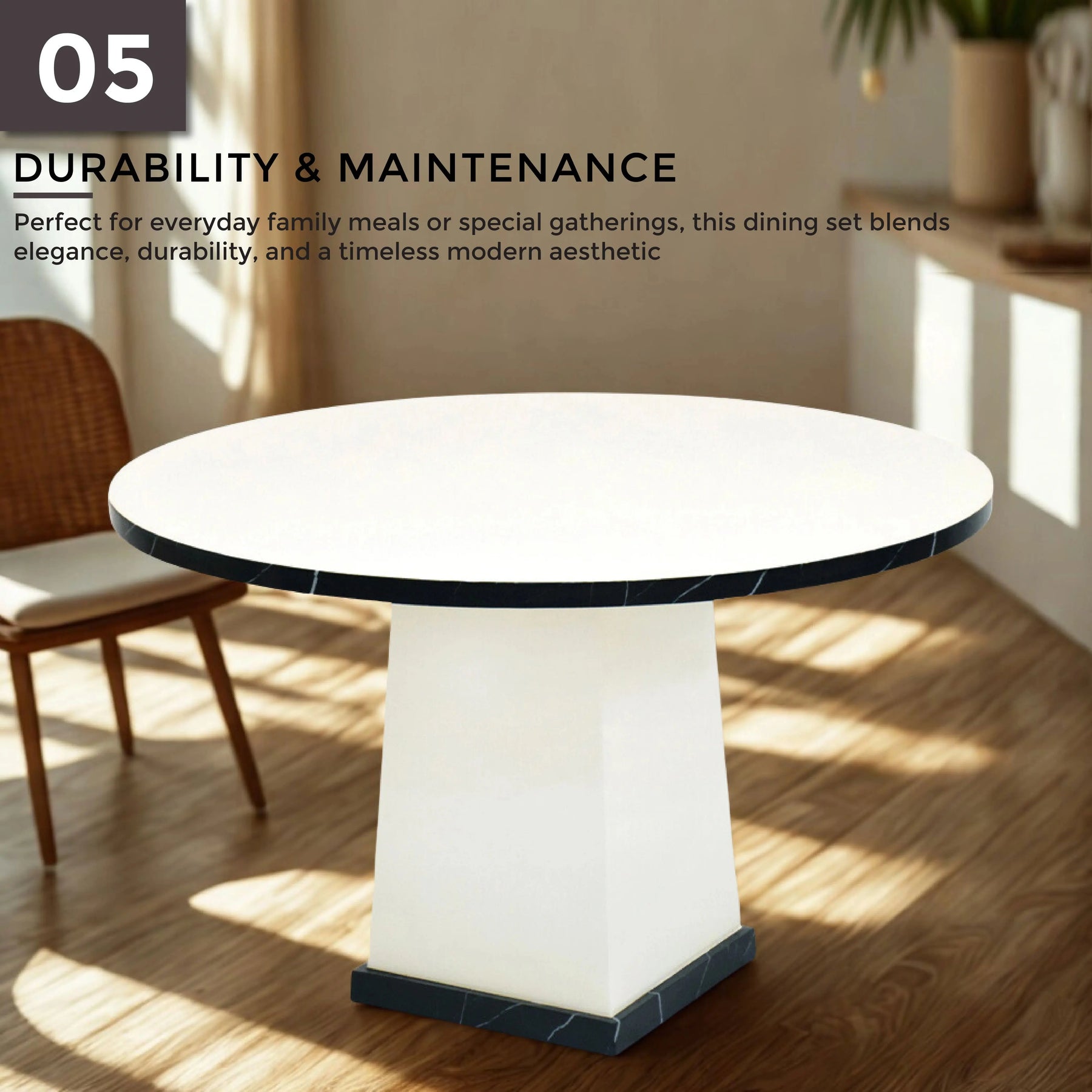 - A 1200mm round surface provides ample dining space, finished with polished smooth edges for both style and safety