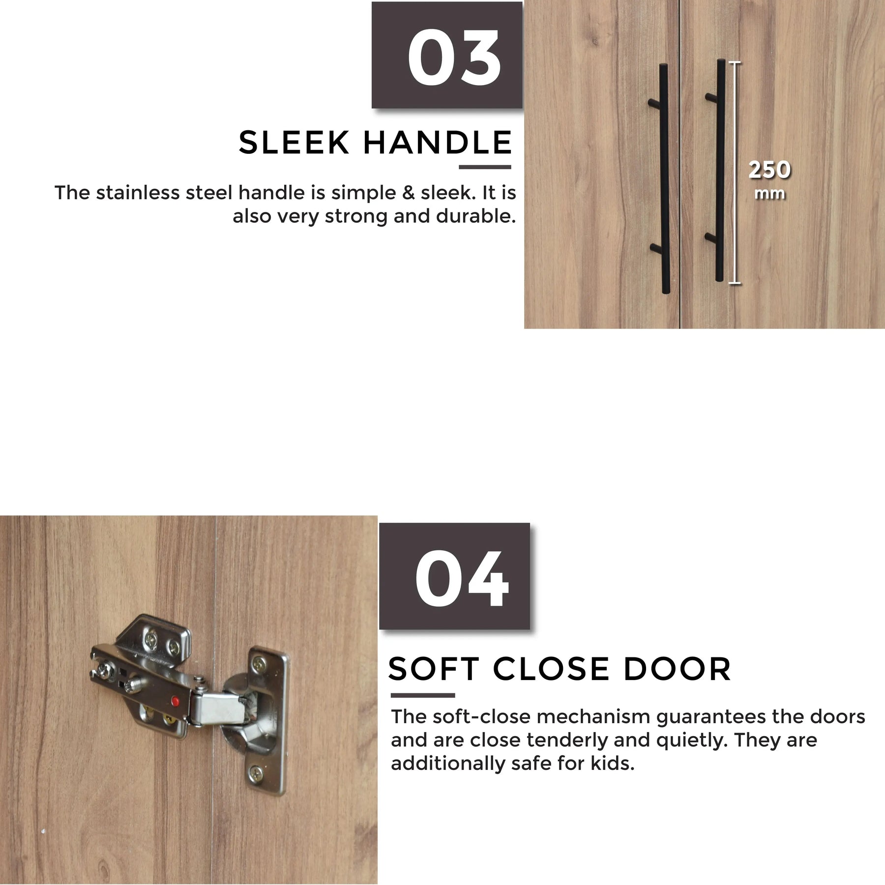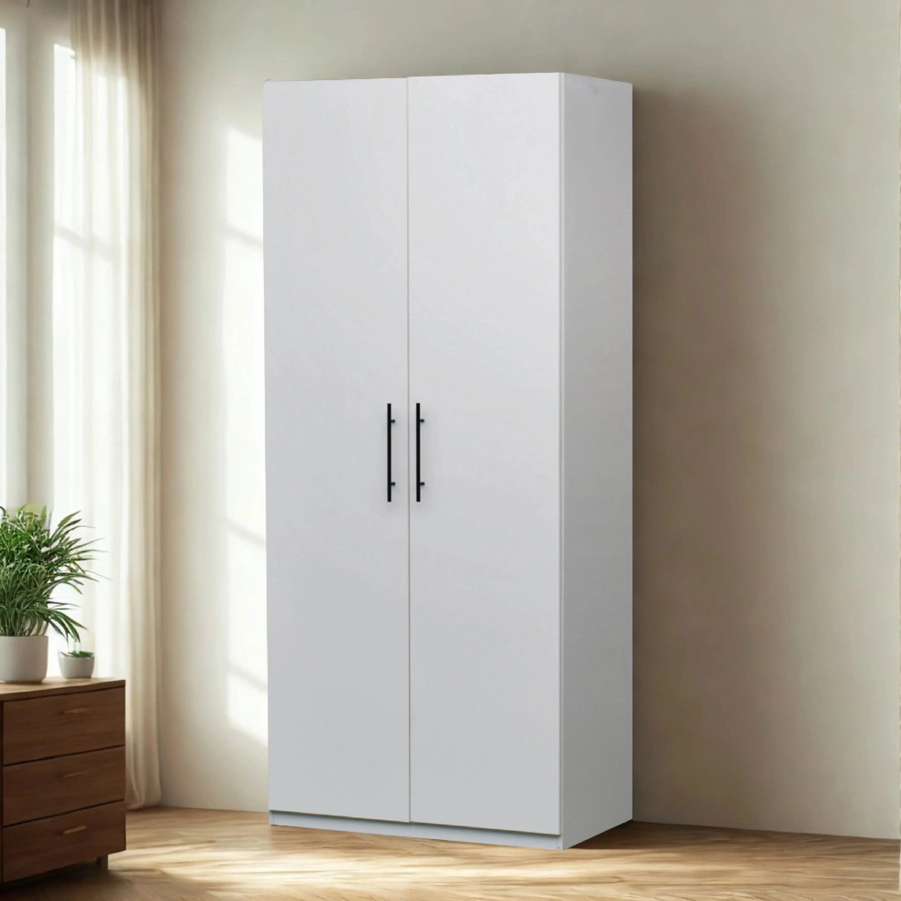 This modern 2-door wardrobe combines style, durability and practicality for everyday use. Crafted from high-quality melamine, it features sleek lines, minimalist handles and a smooth, easy-to-clean surface that complements any interior. With adjustable shelves and ample hanging space, it offers organized, spacious storage for clothing and essentials. Built for long-lasting use, this modern wardrobe adds both functionality and elegance to your bedroom.