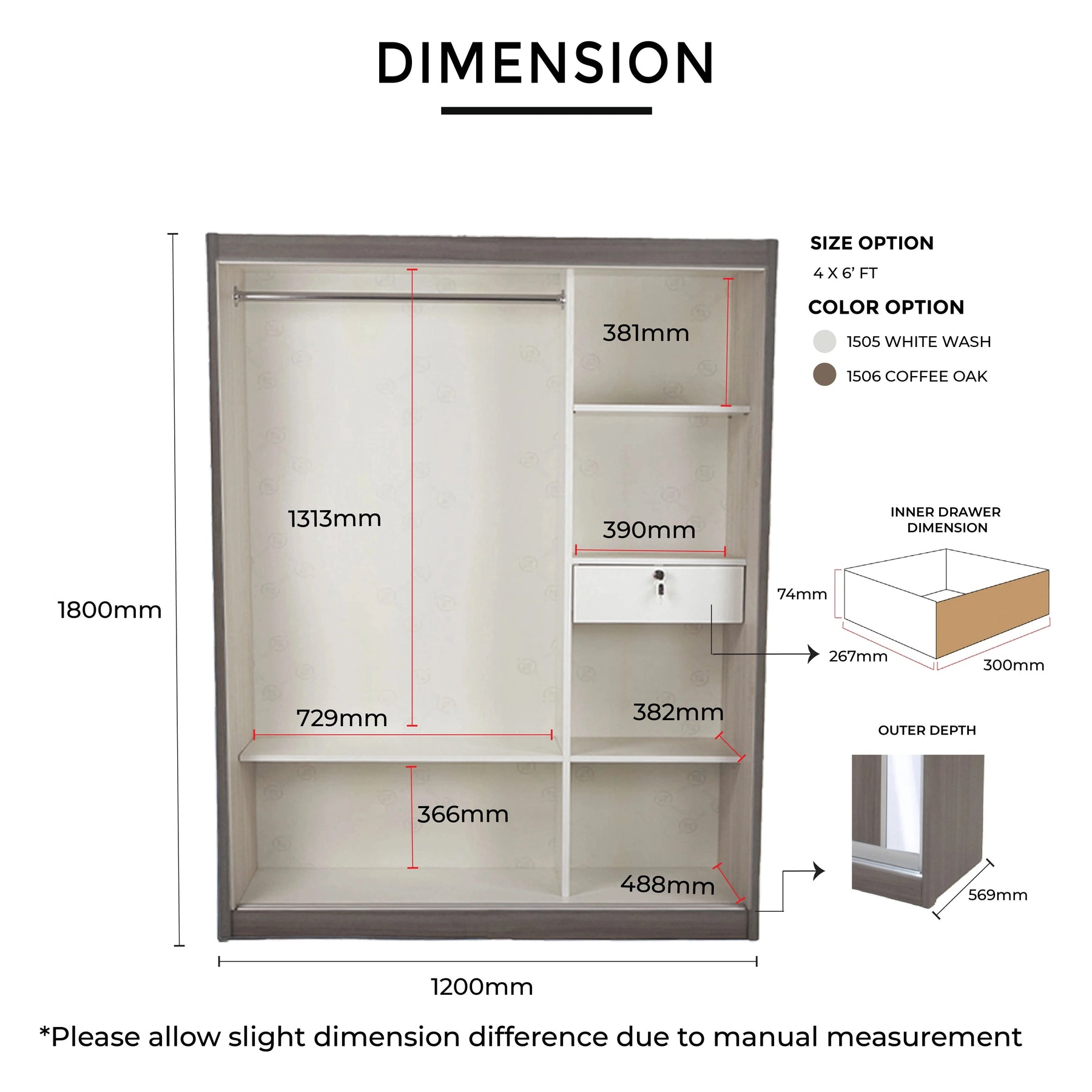 📏Dimension : 4 X 6'FT H1800mm’’ W1200mm’’ D569mm’’