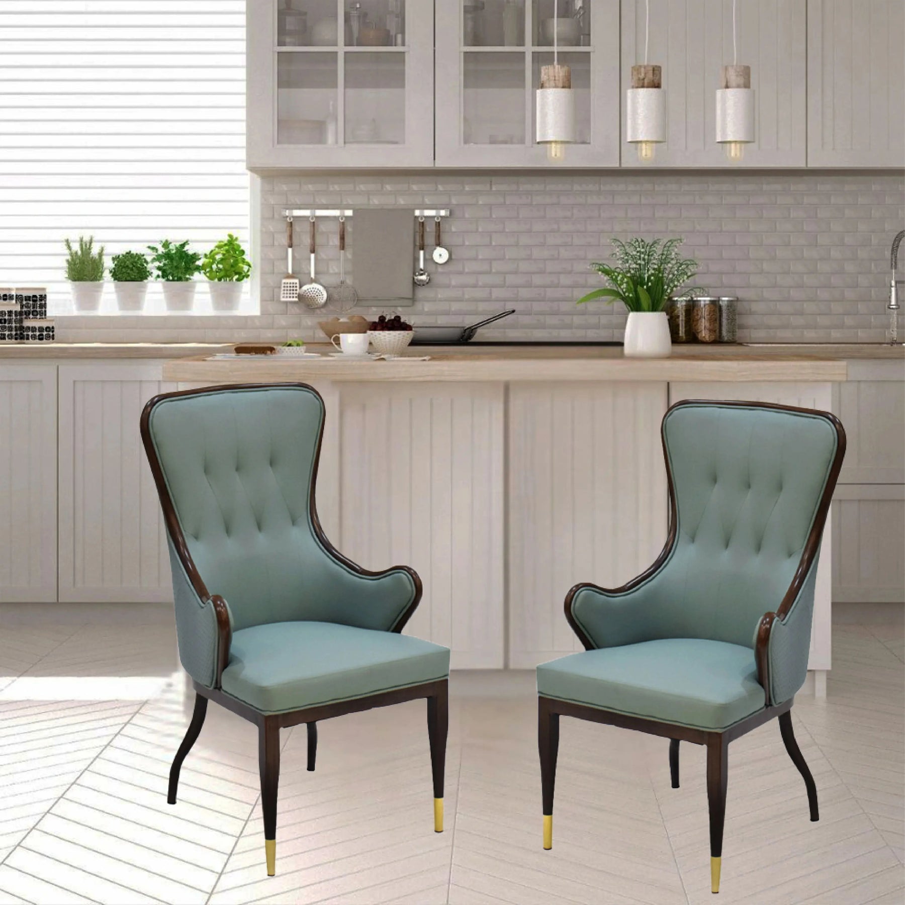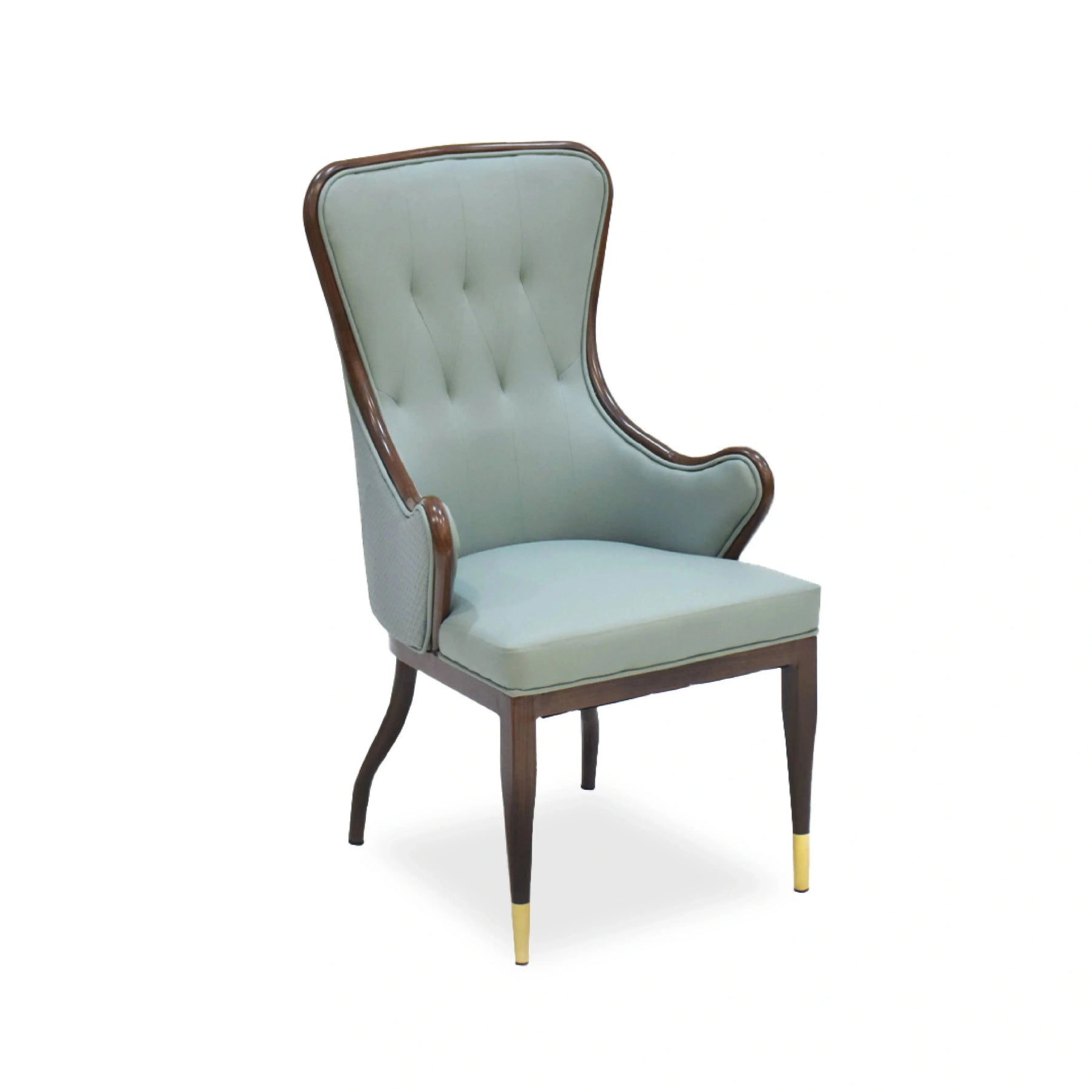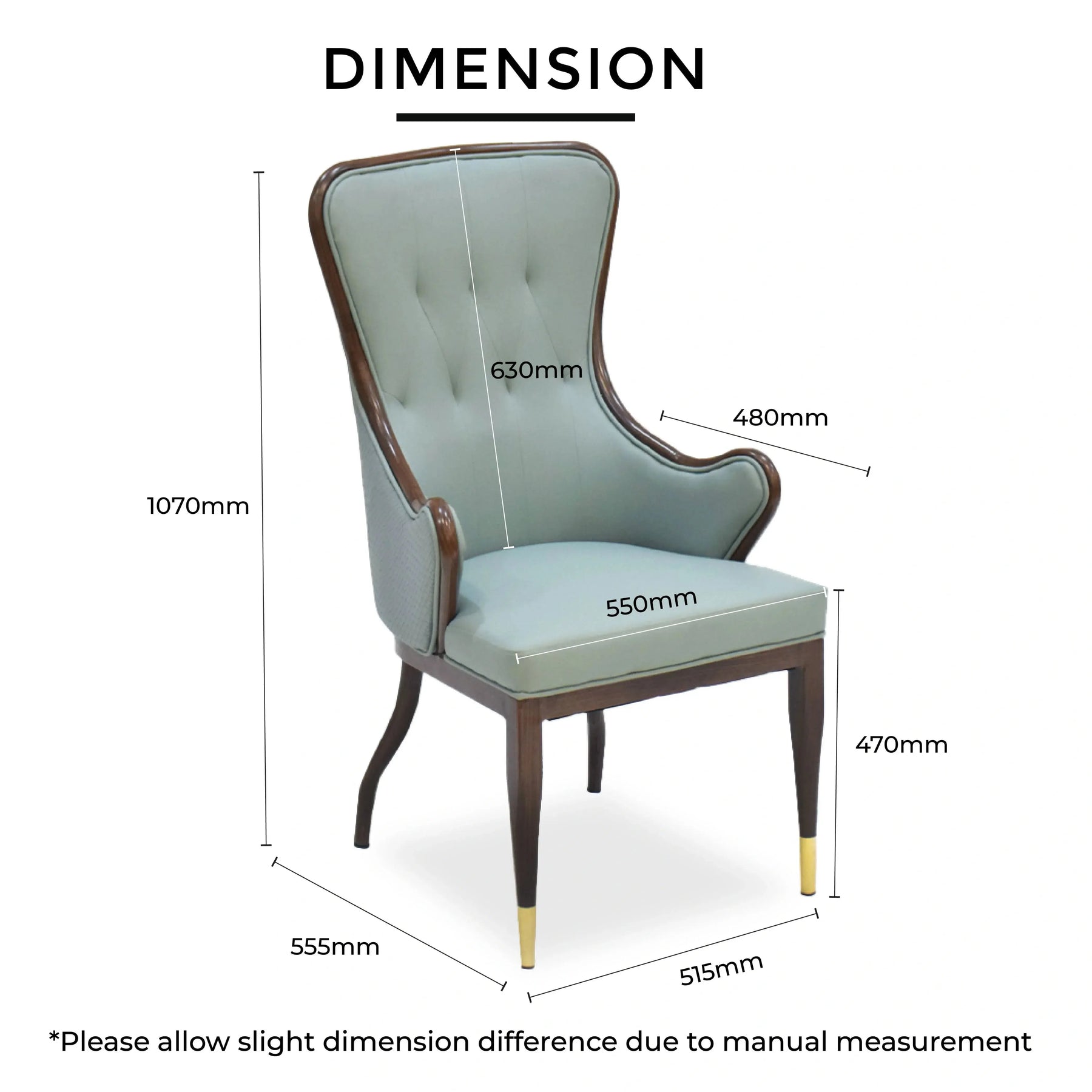 - Designed with a tall, curved high back dining chair style and integrated armrests, it provides ergonomic support while adding timeless sophistication