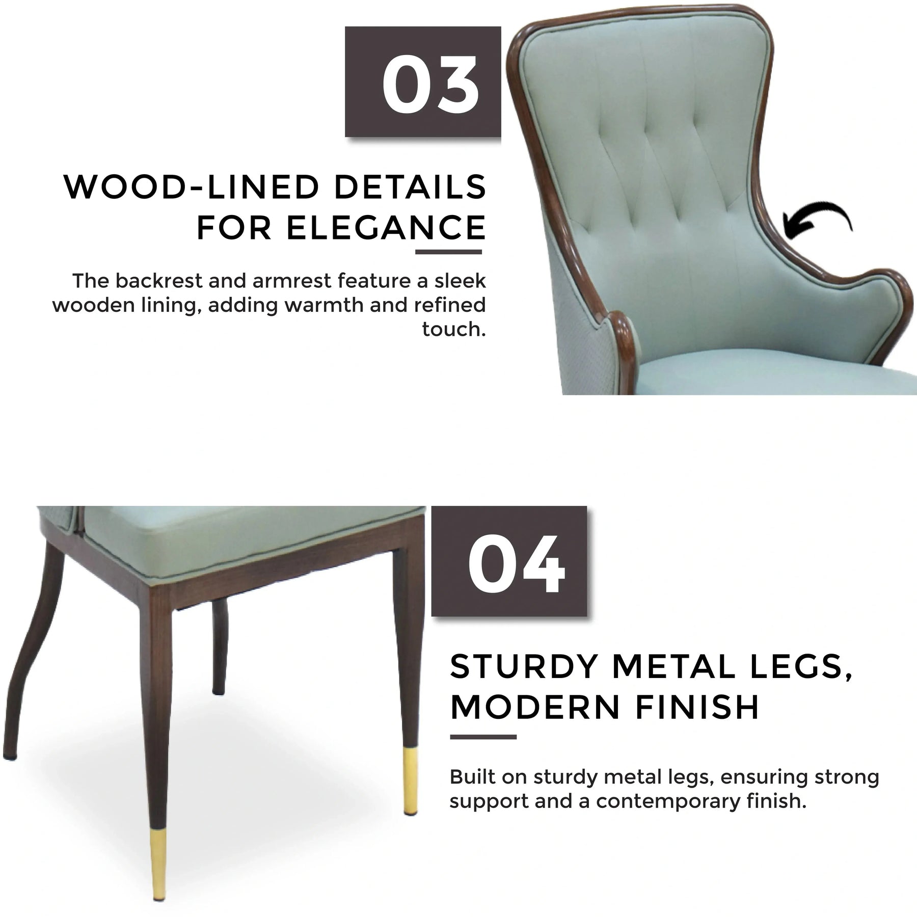 - A stylish and versatile upholstered dining chair that enhances both formal dining areas and longue settings with elegance and comfort