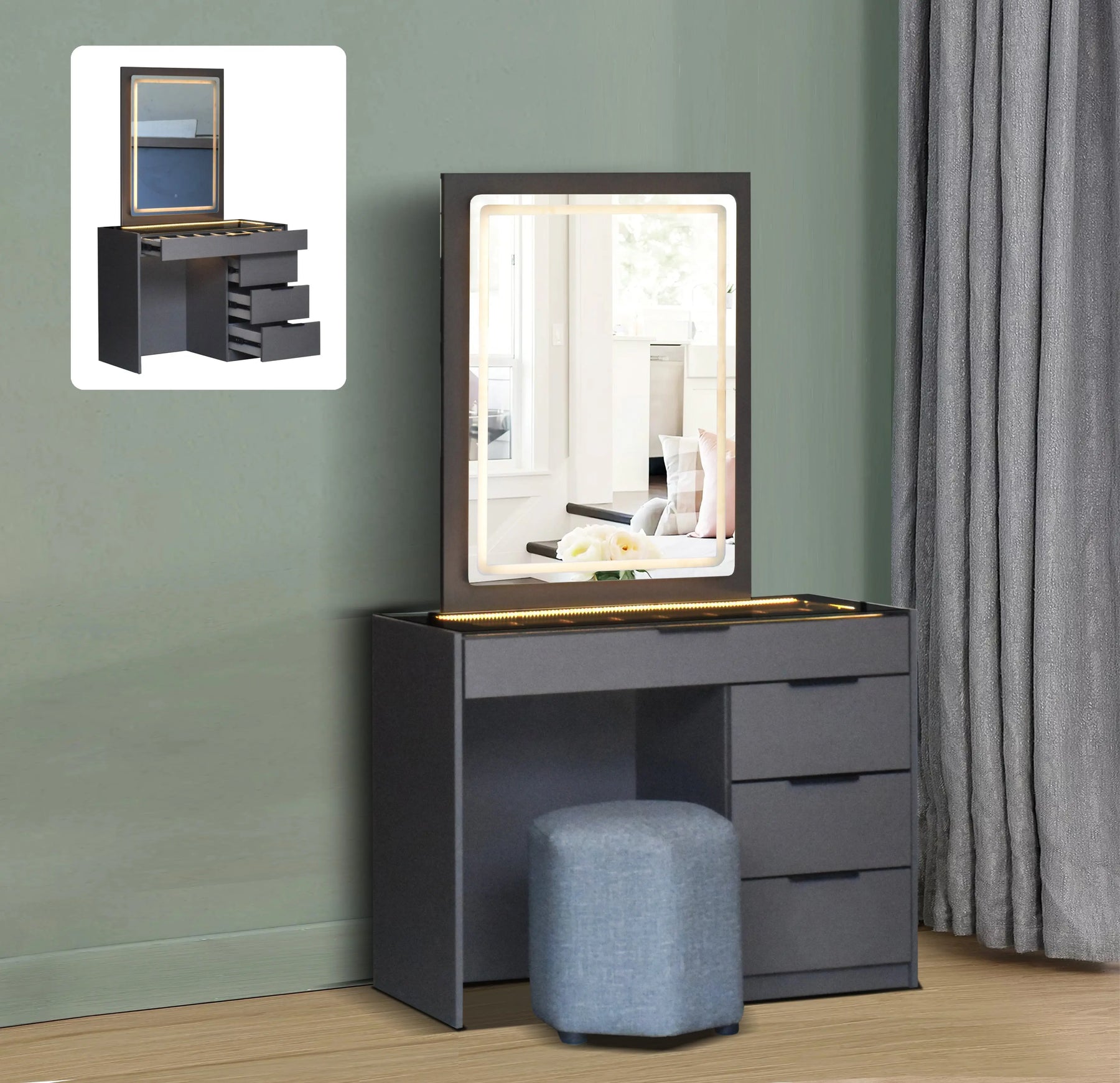 SHANE Dressing Table 6308-DT-TDP LED TOUCH MIRROR MELAMINE DRESSING TABLE WITH STOOL