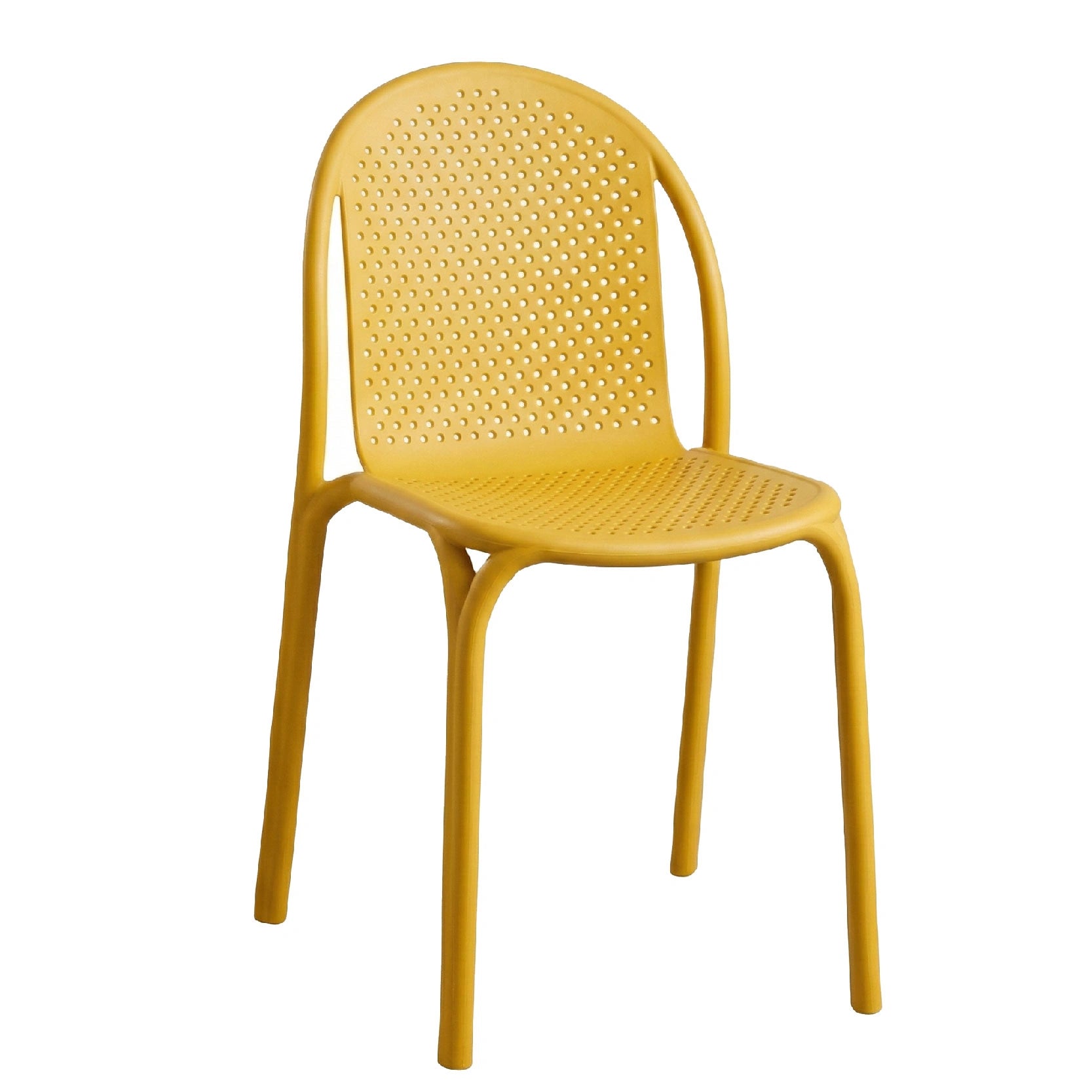 The Aeris Perforated Dining Chair is a vibrant and versatile seating solution designed for both modern indoor dining and creative commercial spaces. Crafted entirely from high-grade Polypropylene (PP), this chair features a unique perforated backrest and seat that provides excellent ventilation and a contemporary, textured aesthetic. The ergonomically curved, single-mold frame offers integrated support and flexibility, ensuring a comfortable seating experience for long durations.