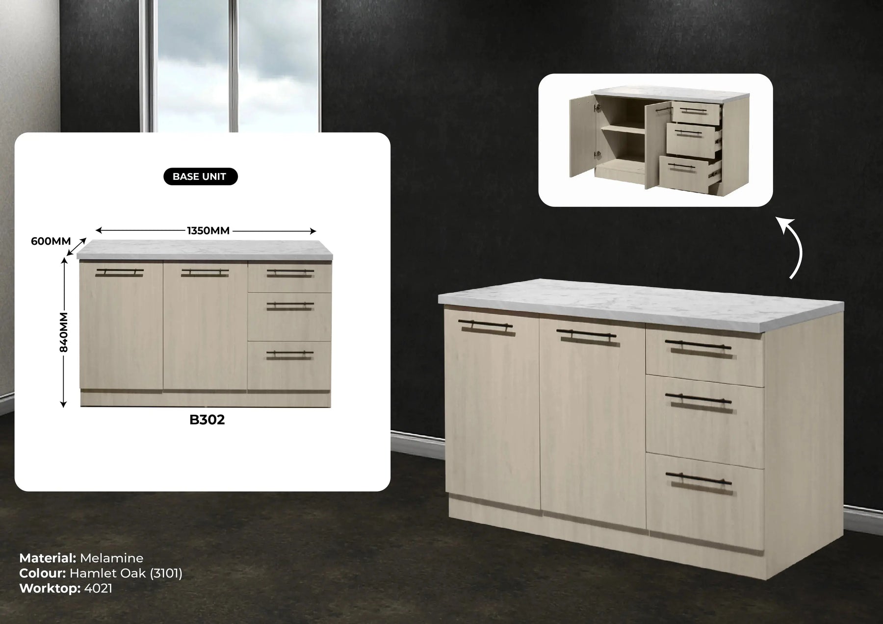 REMARK : CABINET PRICE INCLUDE MELAMINE TOP ONLY