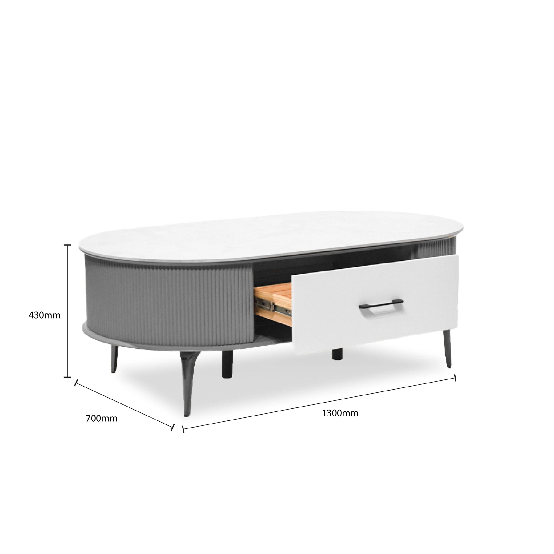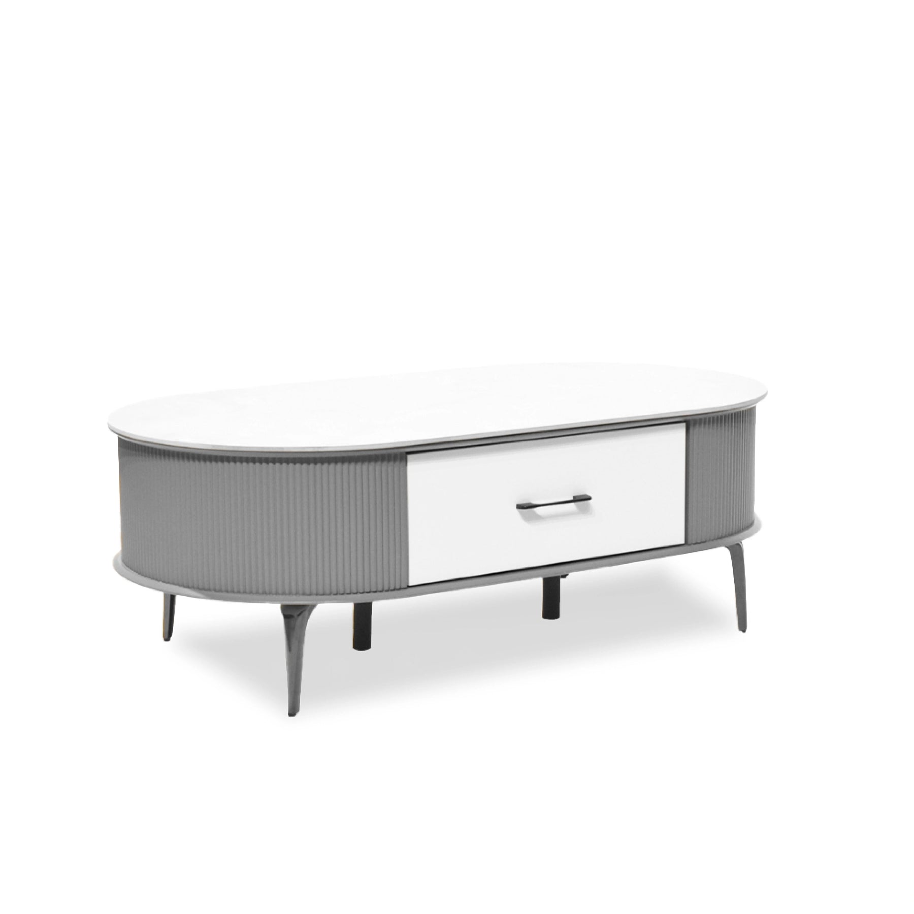 The Brewla Coffee Table is a perfect fusion of industrial strength and contemporary elegance, designed to be the centerpiece of your modern living room. This table features a premium ceramic top in a sophisticated Grey stone texture, providing a surface that is not only visually stunning but also exceptionally resistant to heat, scratches, and stains.