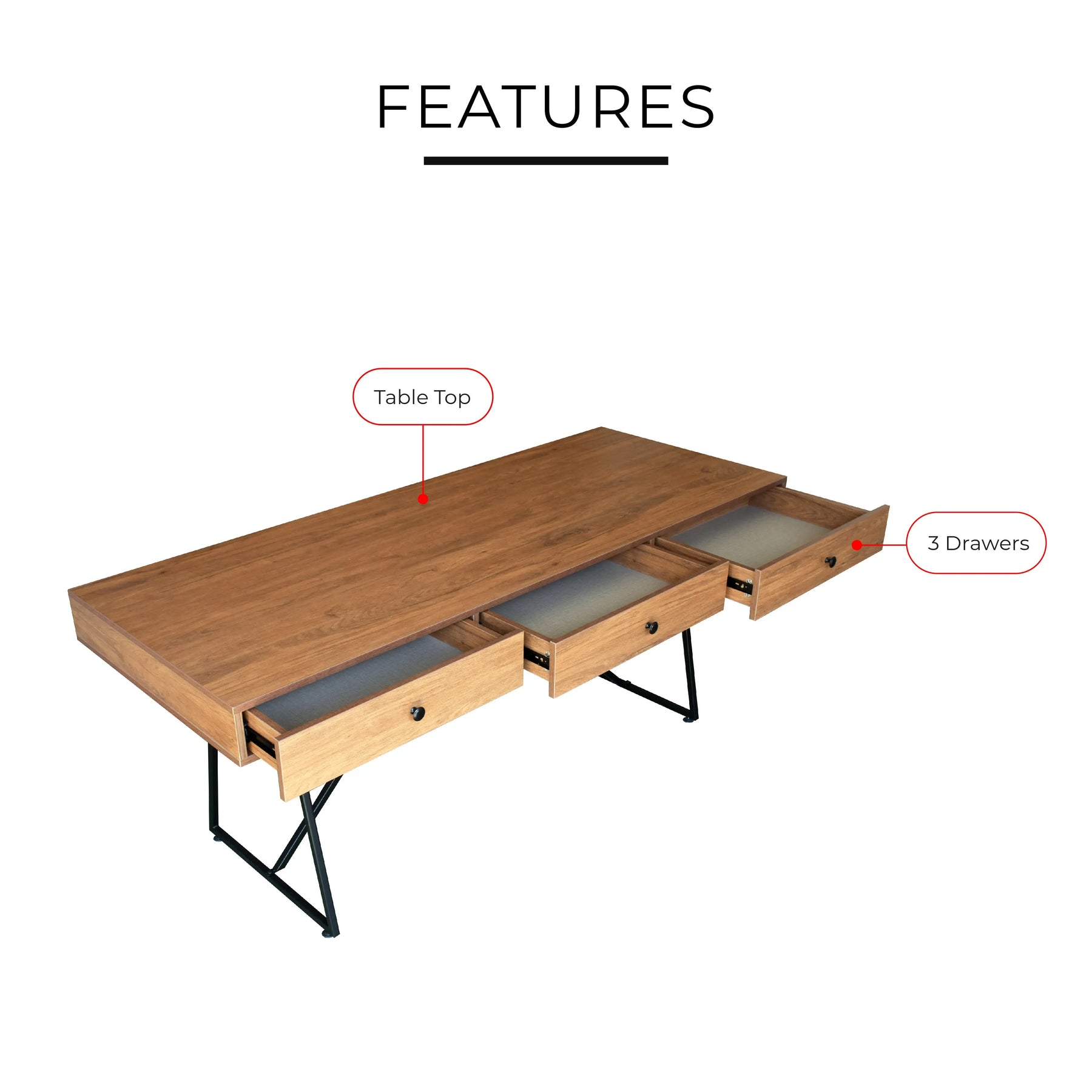 6'FT STUDY DESK WITH 3 DRAWER / CONSOLE TABLE / MELAMINE +METAL LEG