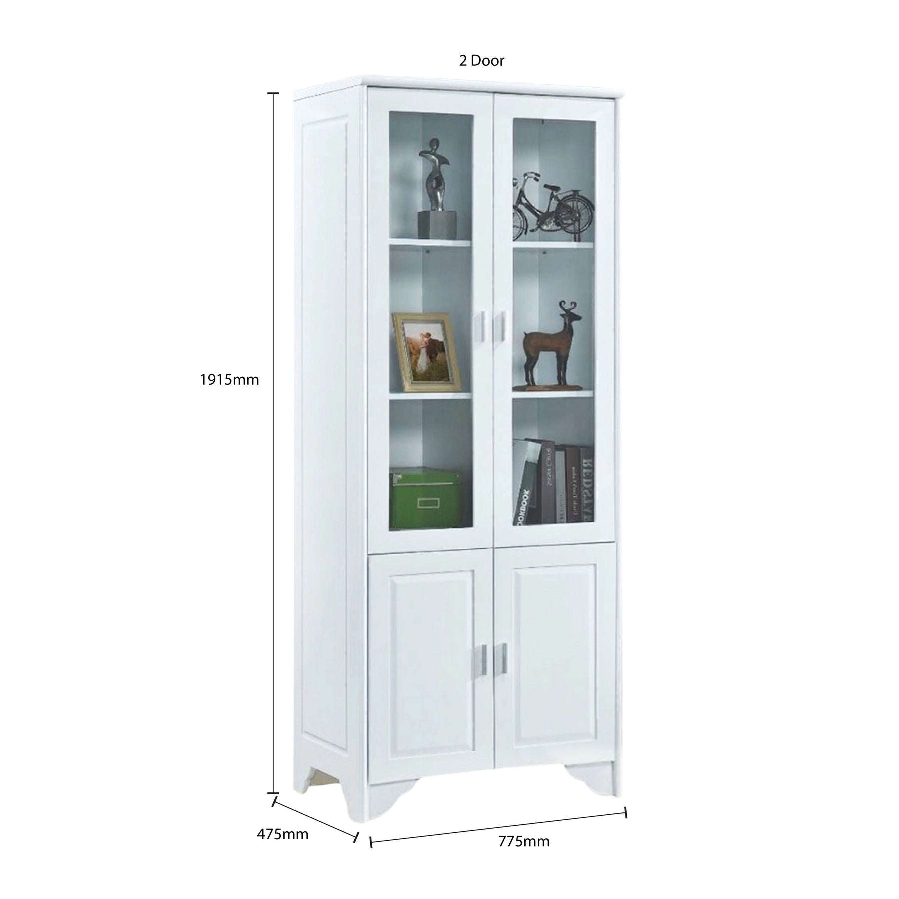 The Chester Book Cabinet is a sophisticated storage solution that brings a touch of classic elegance to your home or office. Finished in a radiant White Baking Paint, this cabinet features a timeless design with softly rounded corners and a clean, traditional silhouette. The upper section is enclosed by glass-paneled doors, providing a clear view of your curated library or decorative items while keeping them protected.
