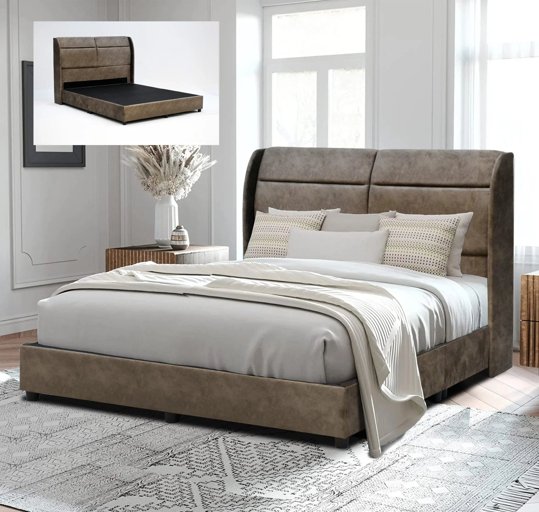 CONNECTICUT BED FRAME BD1705-5 B29-RH BED DIVAN / LUXURIOUS MV FABRIC / CHOCO