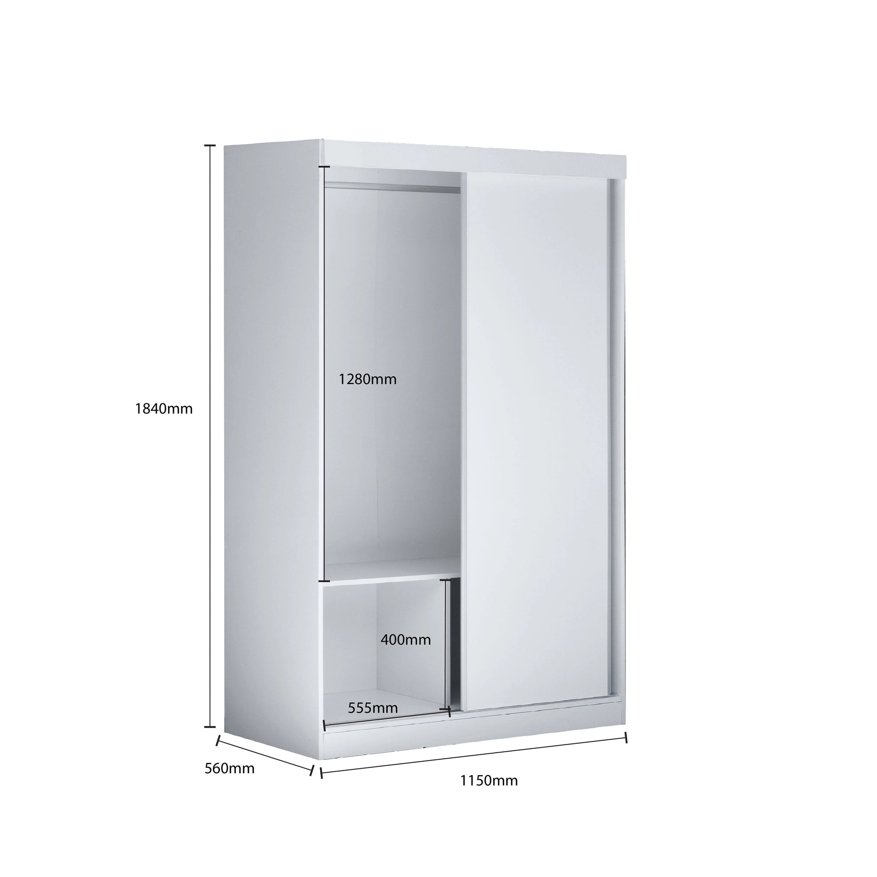 White wardrobe with dimensions labeled on a white background
