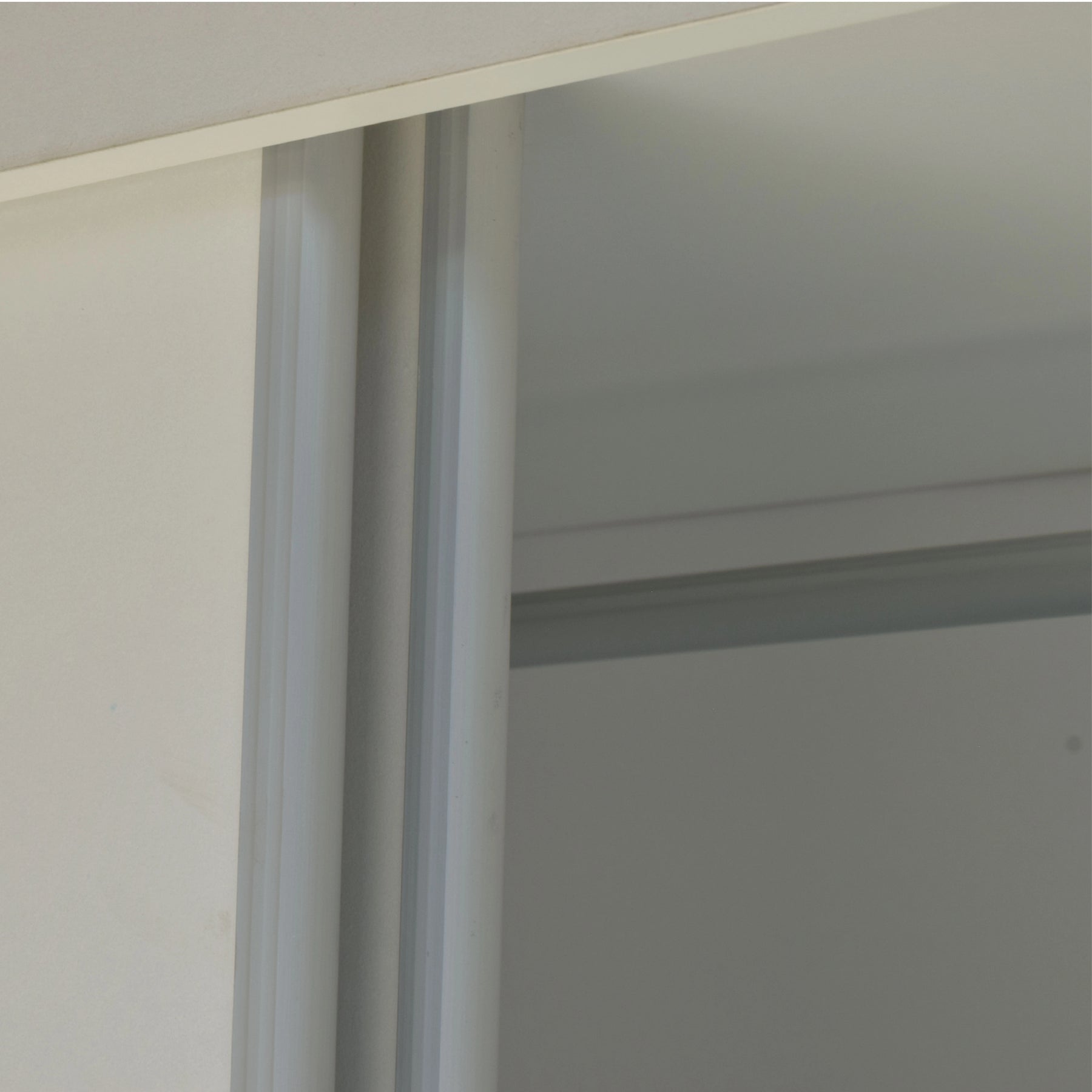 Close-up of a sliding door mechanism with tracks and panels.