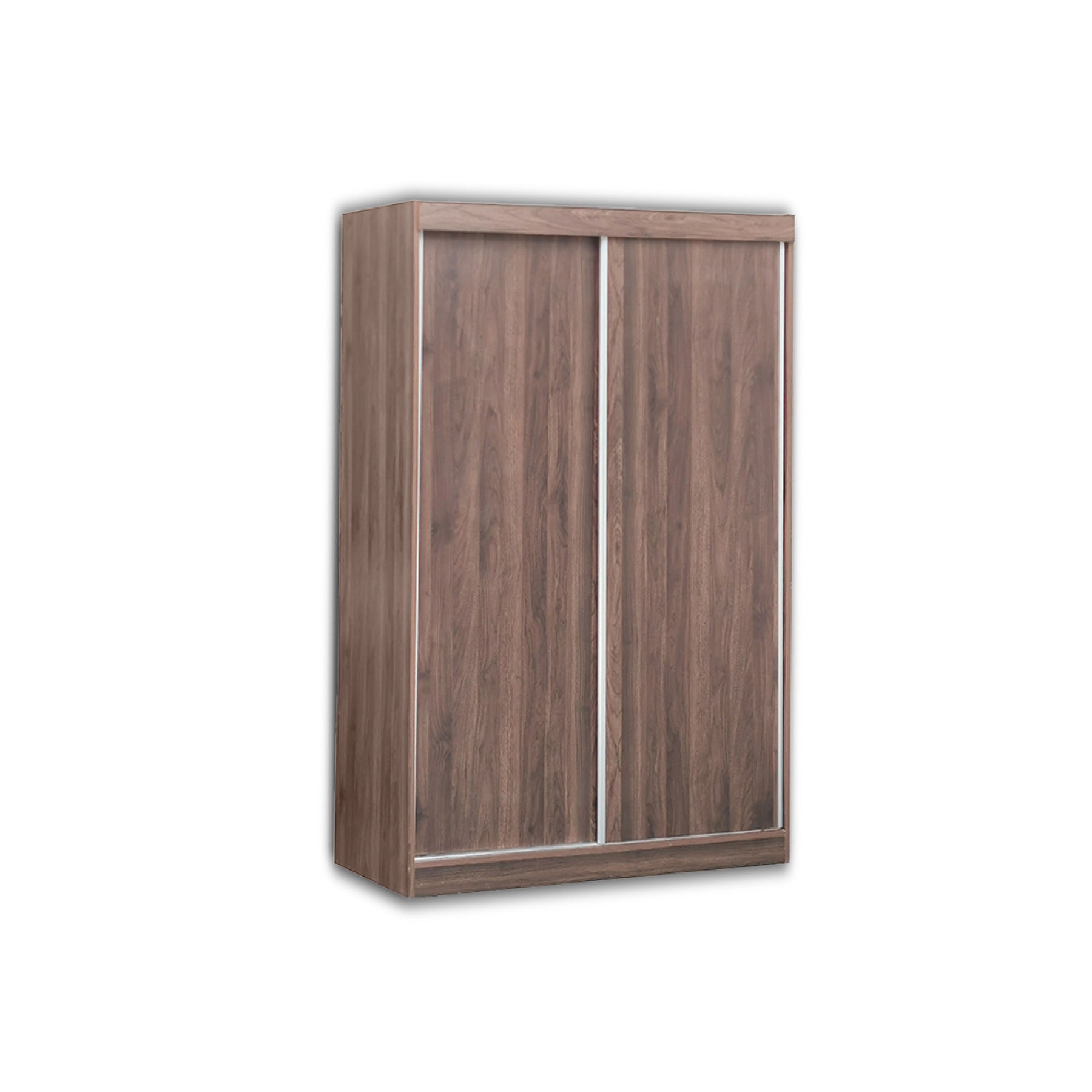 Wooden wardrobe with sliding doors on a white background