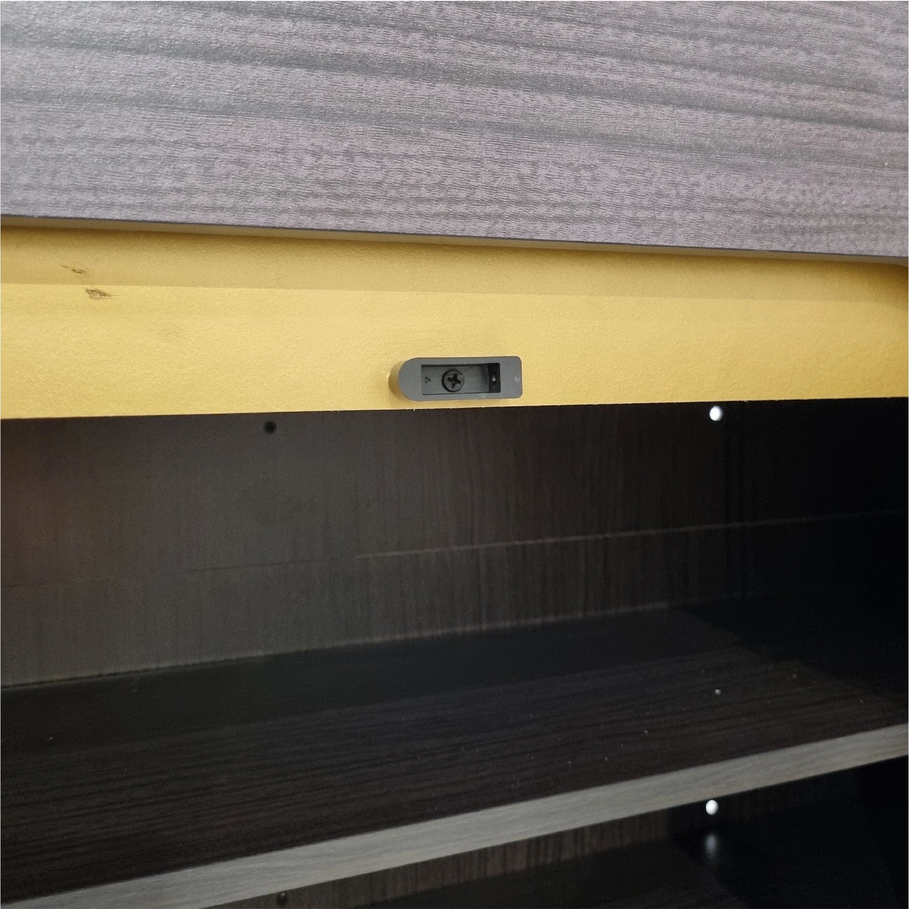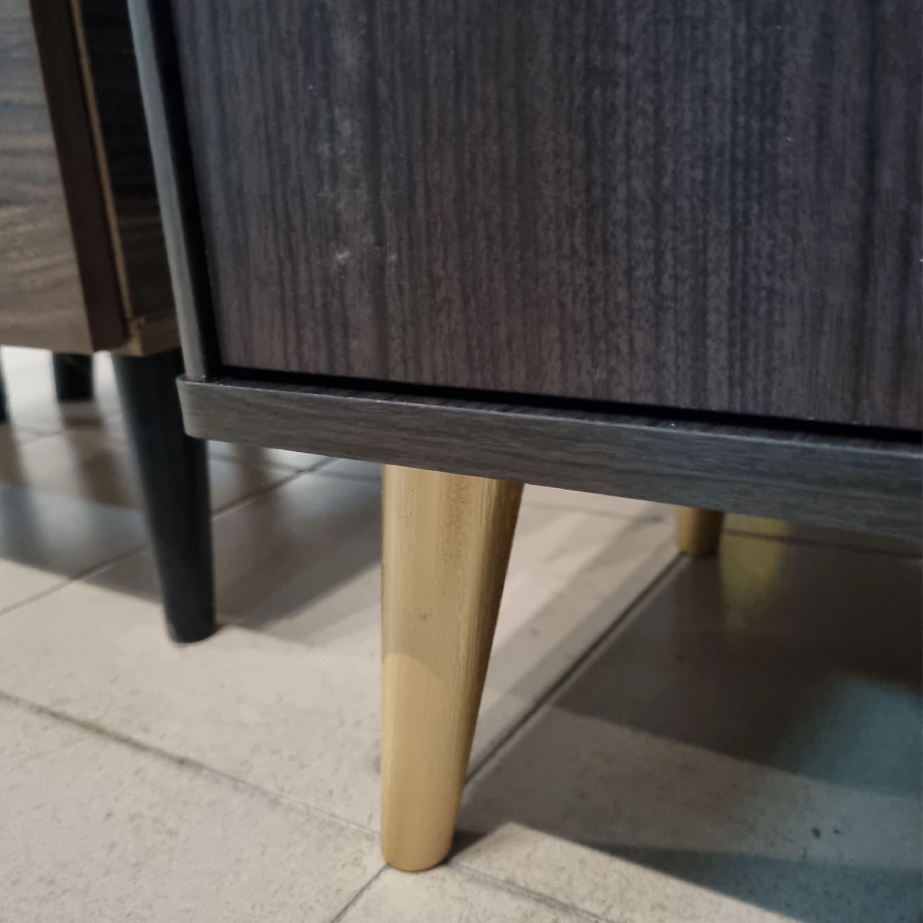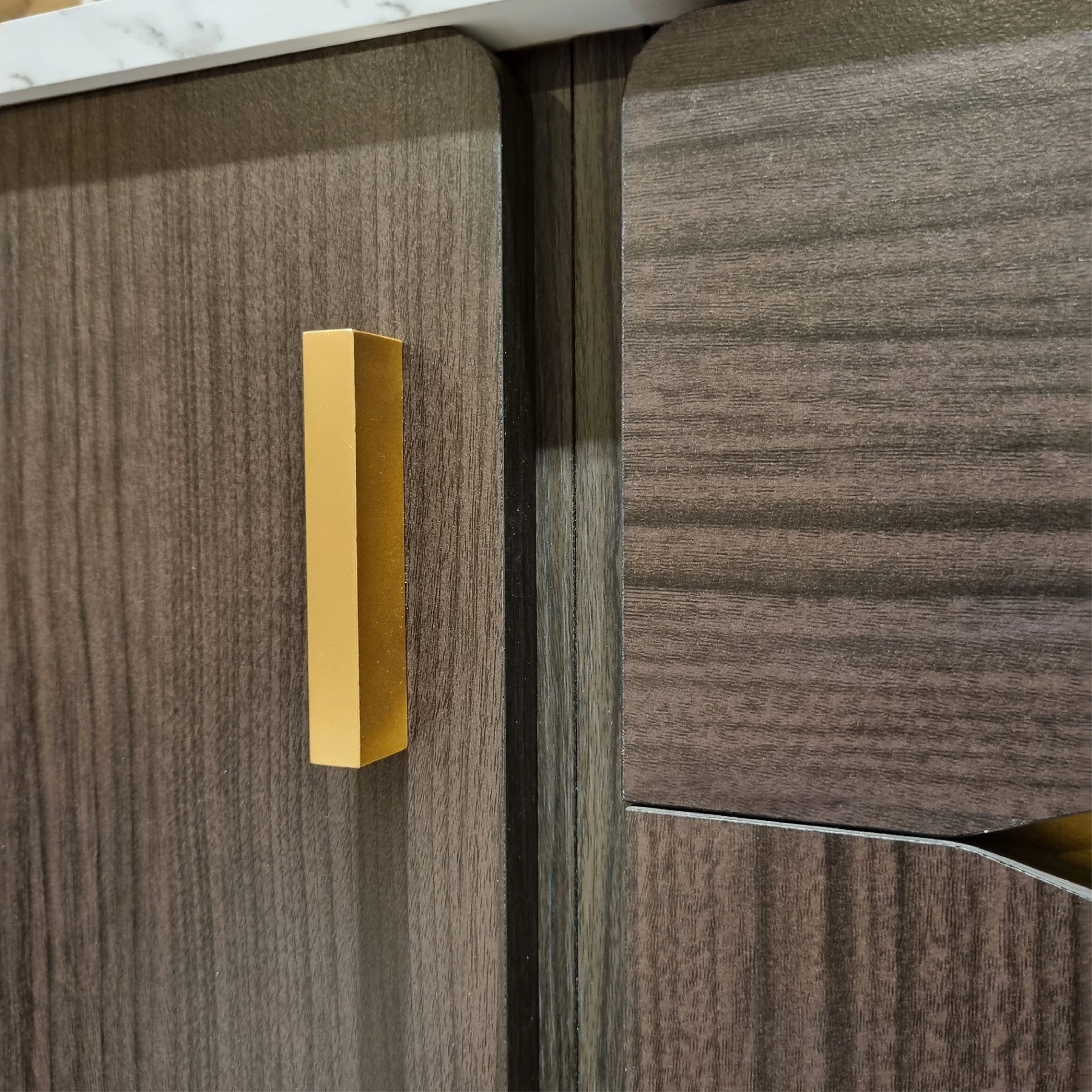 Engineered for both style and durability, the unit is topped with a high-quality Hot Press Top, providing a resilient surface for decorative items or everyday essentials. The interior is designed for efficient organization, offering four spacious tiers of shelving to keep your footwear collection neatly arranged. For a premium finishing touch, the cabinet is accented with elegant vertical gold-tone handles and elevated by matching gold-finish legs. These tapered legs not only provide excellent stability but also create sufficient floor clearance for easy cleaning.