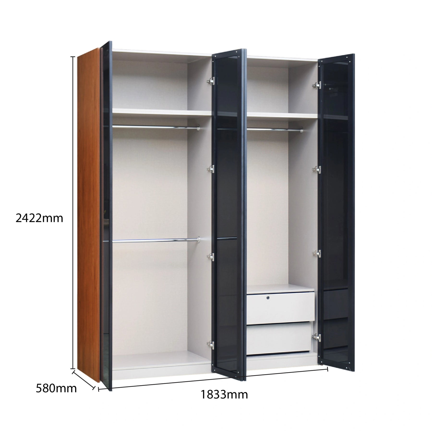 The Hayla Wardrobe is a premium, modular storage system designed to deliver a sophisticated built-in look for modern bedrooms. Expertly crafted from high-quality melamine featuring zero-joint edging technology, this wardrobe offers exceptional water resistance and a seamless, high-end finish. The design is distinguished by its elegant swing doors and a signature glass door with a sleek metal handle, allowing you to showcase your favorite pieces while keeping them protected.