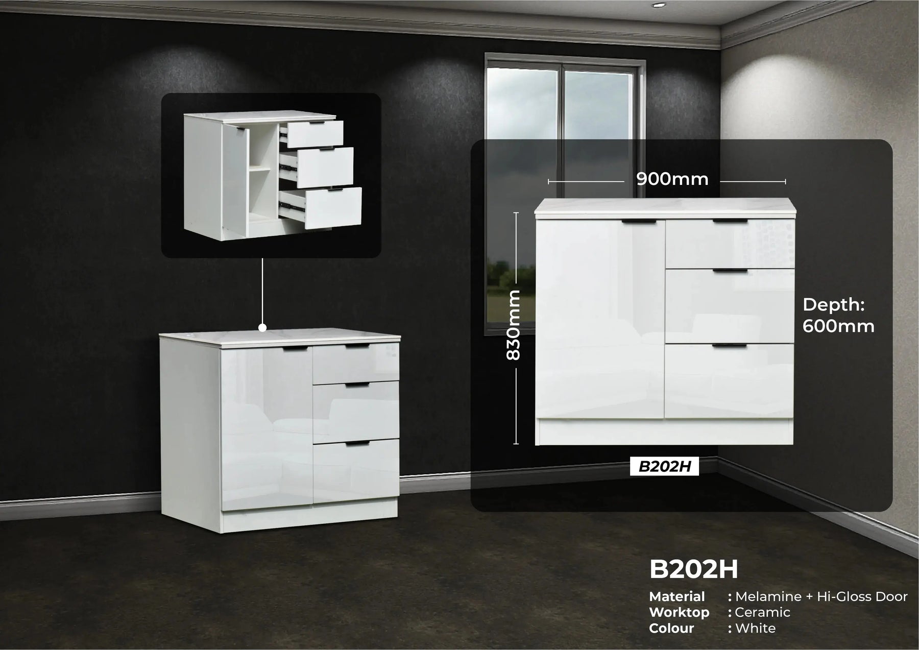 SIZE: W900 D600 H840 MM ( 3'FT)