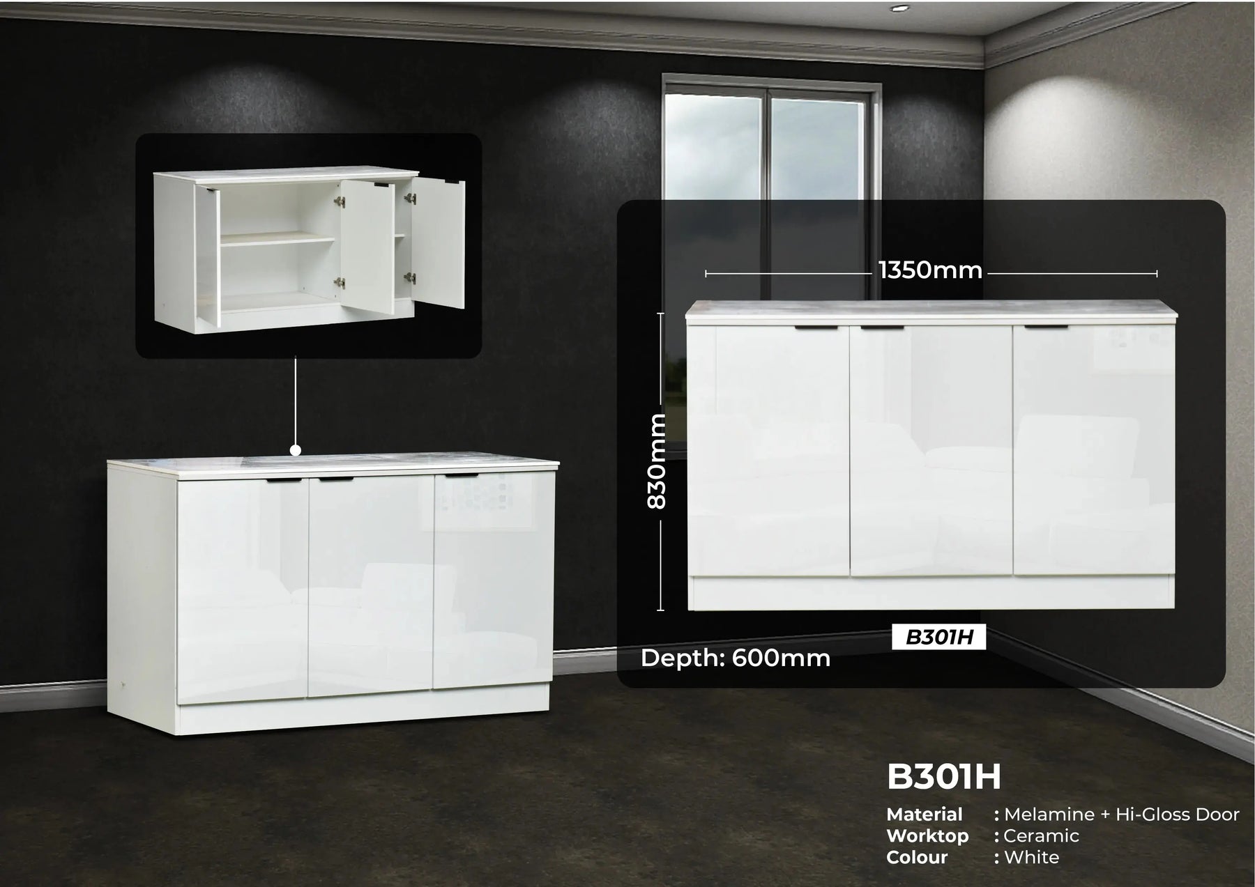 Highgloss Modular Kitchen Cabinets KC798-HIGHGLOSS B301H MODULAR KITCHEN CABINET /HIGHGLOSS / WHITE