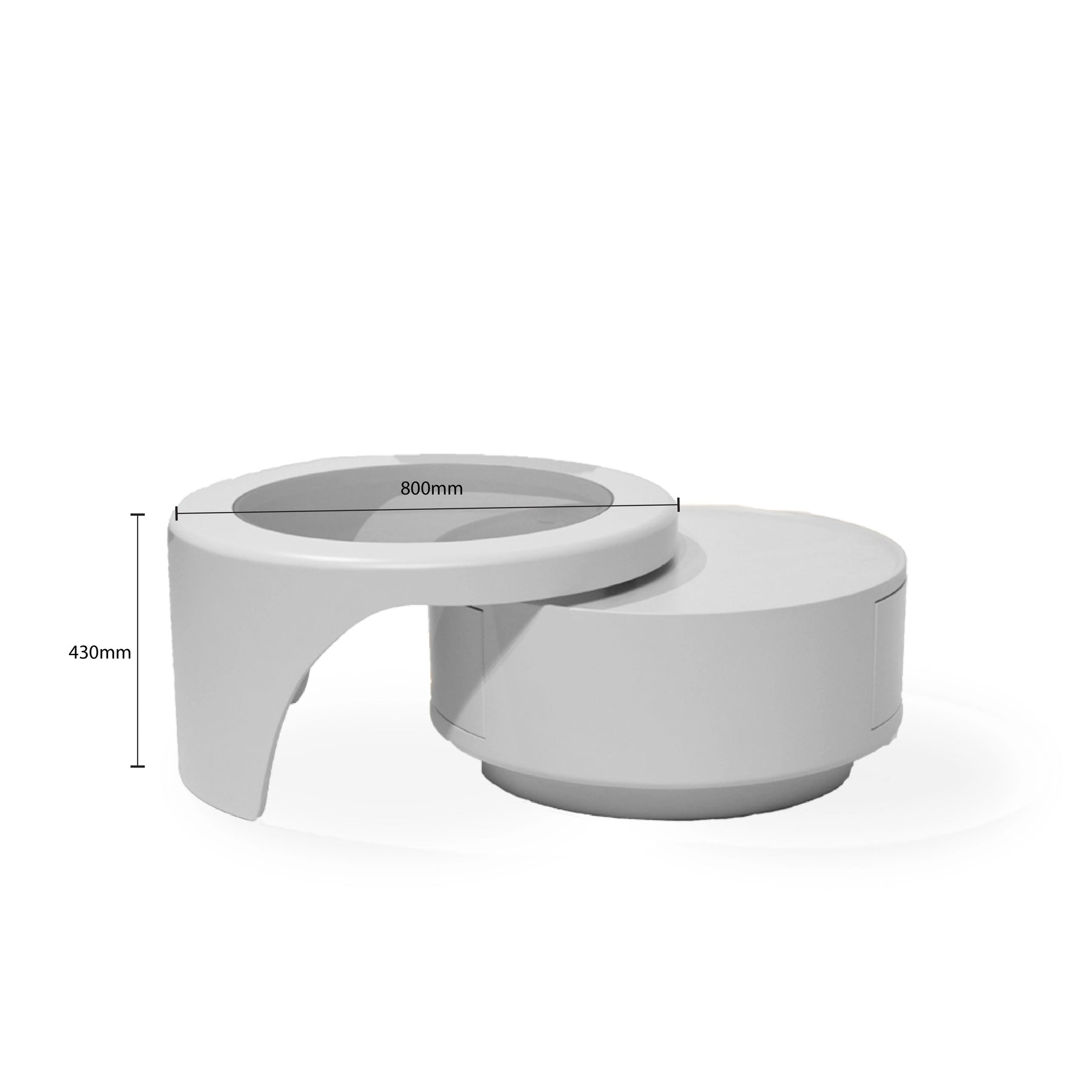 The Invara Coffee Table is a masterpiece of contemporary geometric design, offering a unique modular silhouette that brings a futuristic touch to your living room. This innovative piece features a dual-layered, rotating-style design, combining a sleek circular glass top insert with a clean, painted finish body. The sculptural white frame flows into an architectural "C" shaped support base, creating an airy and open aesthetic.