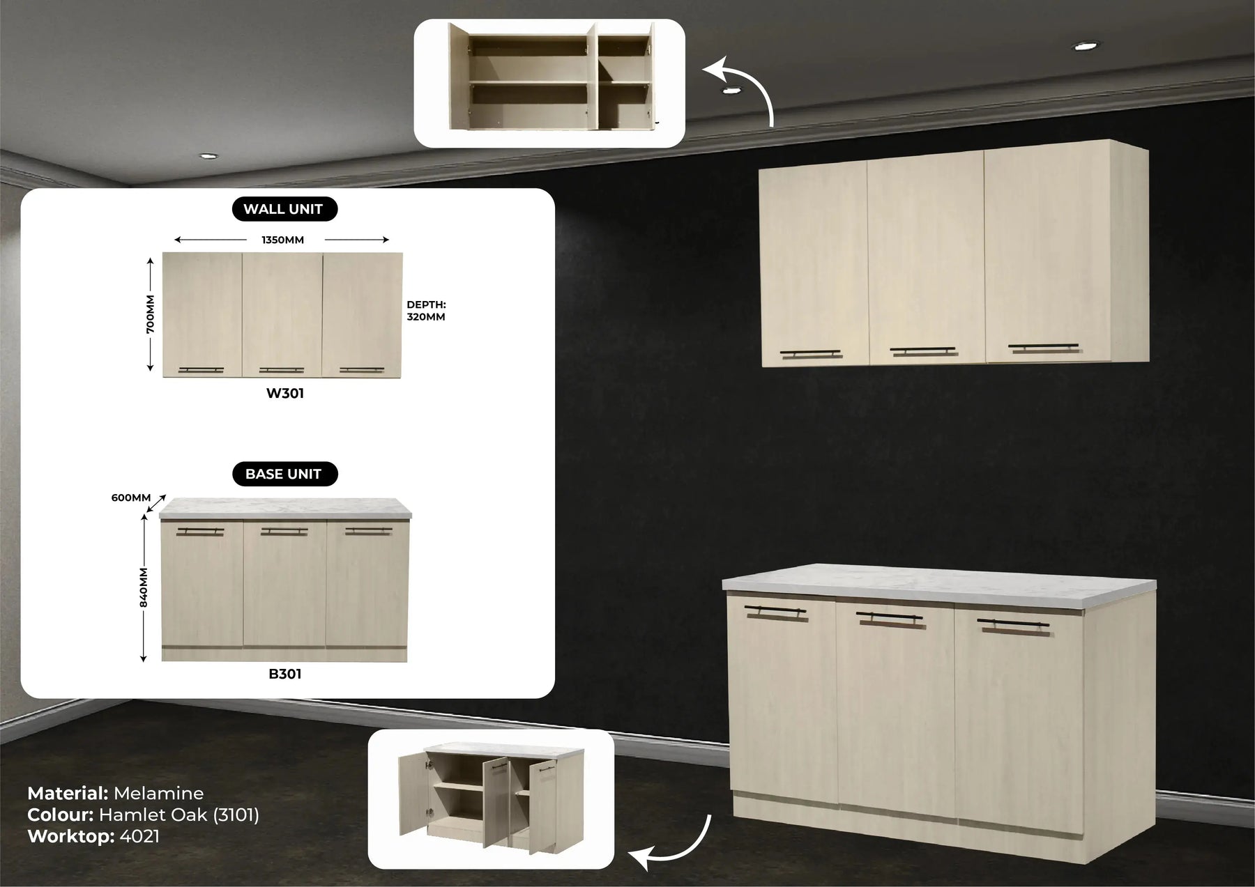 REMARK : CABINET PRICE INCLUDE MELAMINE TOP ONLY