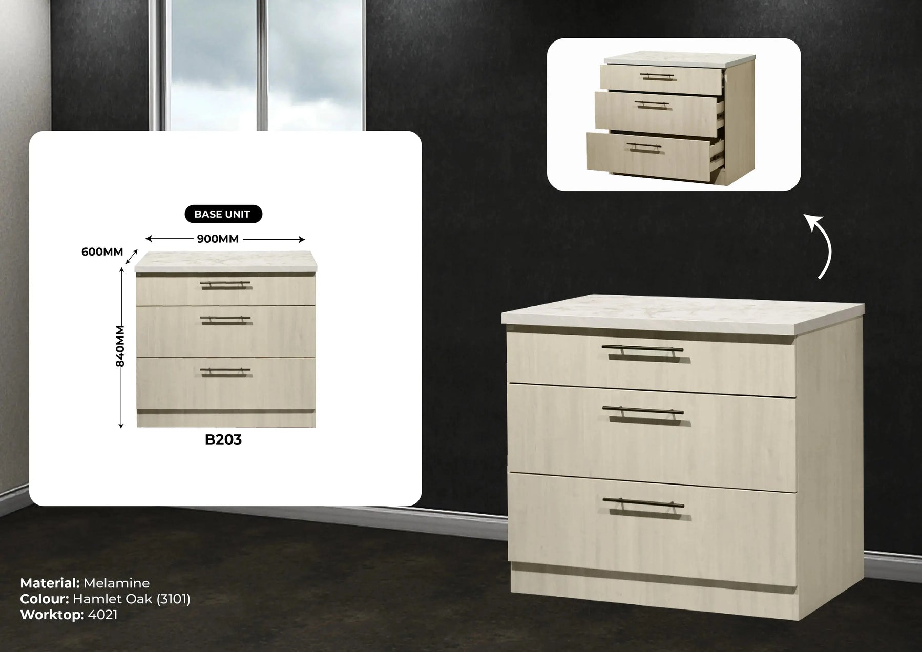 REMARK : CABINET PRICE INCLUDE MELAMINE TOP ONLY