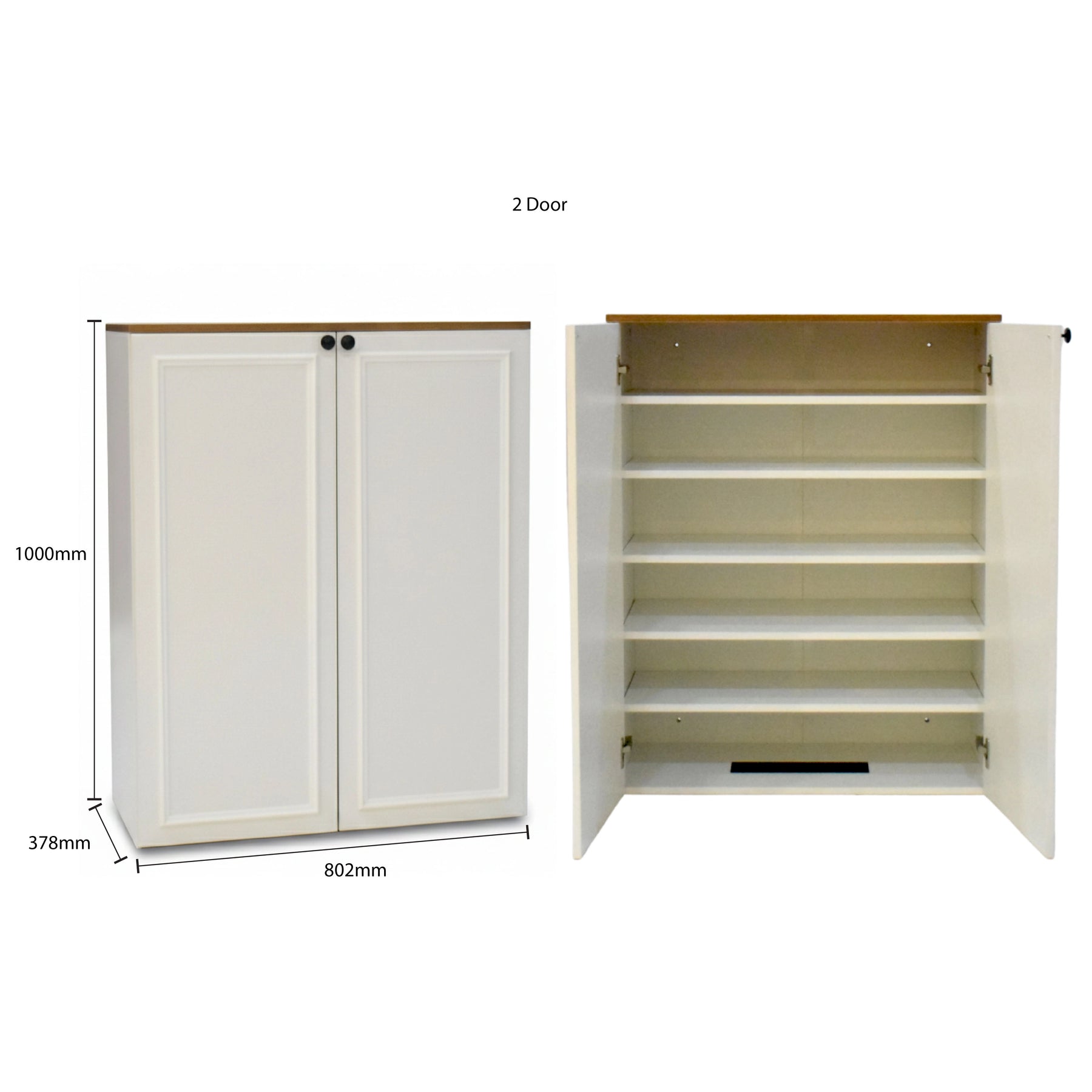 Engineered for superior organization, this unit features a spacious interior with six tiers of shelving. The design incorporates a built-in ventilation grille at the base, which promotes essential airflow to keep your footwear fresh and reduce odors. For a refined finishing touch, the doors are equipped with minimalist black round knobs and are supported by heavy-duty metal hinges for smooth, reliable operation. Crafted from high-quality Melamine, the Kora Shoe Cabinet is built for durability and ease of maintenance, ensuring it remains a staple in your home for years to come.