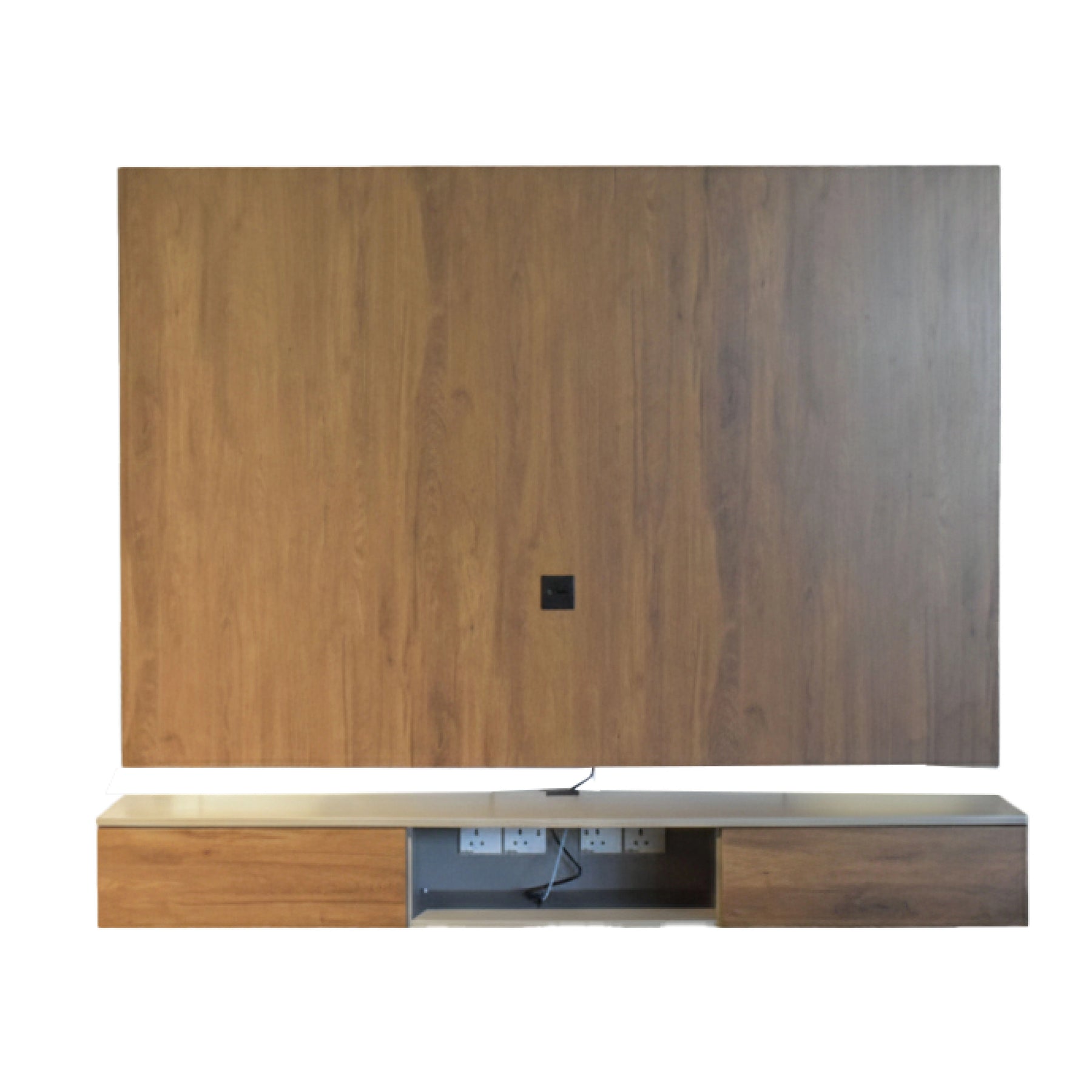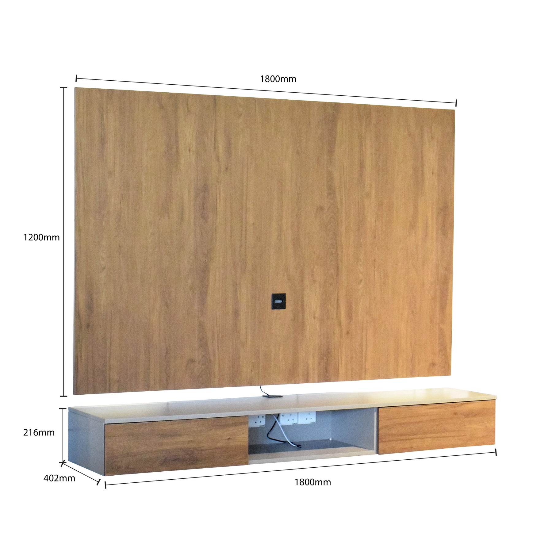The Linear Cinnamon Hall Cabinet is a sleek, wall-mounted furniture set designed to bring architectural elegance and practical storage to modern entryways. This unit features a grand 1800mm wide backdrop panel that serves as a protective decorative shield for your walls while creating a high-end visual anchor. Complementing the panel is a low-profile floating console with a 402mm depth, offering a robust surface for home decor and concealed storage for hallway essentials. Built with high-durability Full Melamine in a rich Cinnamon Oak finish, this cabinet is engineered to resist scratches and daily wear while maintaining a warm, contemporary aesthetic.