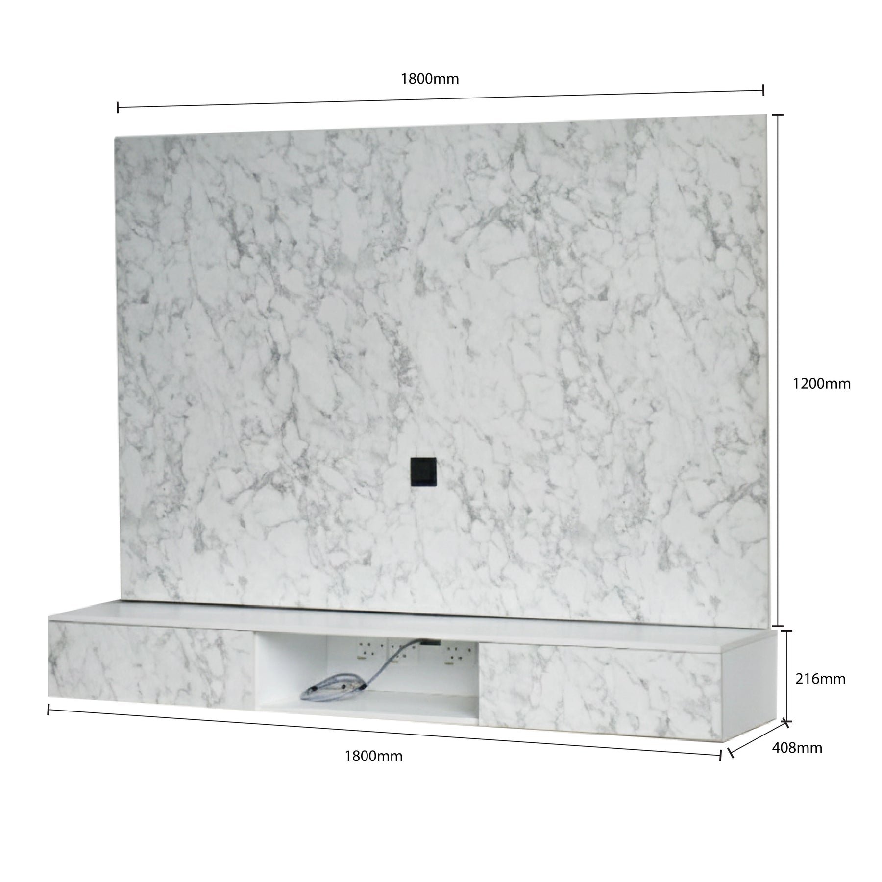 The Manhattan Hall Cabinet is a contemporary wall-mounted furniture set designed to transform entryways and corridors into elegant, organized spaces. This unit features a stunning dual-component design, including a large 1200mm high backdrop panel that provides a sophisticated visual frame while protecting wall surfaces. Below, a sleek floating console offers a minimalist storage solution with a slim 402mm depth, ensuring it fits perfectly even in narrow hallways without obstructing movement. Finished in a clean White and Marble aesthetic, this Full Melamine cabinet combines luxury textures with a durable, easy-to-clean surface, making it an ideal focal point for the modern home.