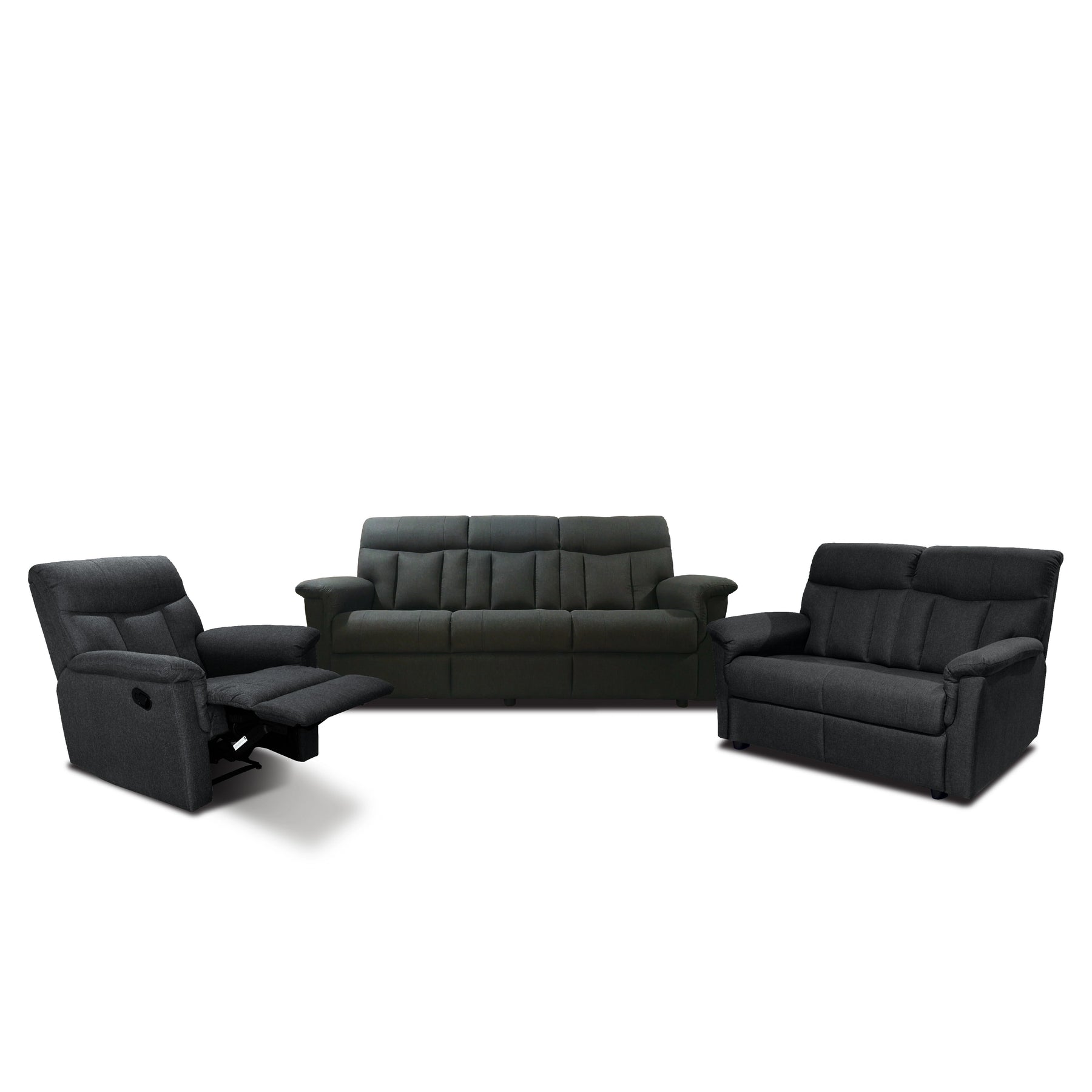 For total body wellness, each seat provides wide and firm back support and plush, comfortable armrests that offer targeted ergonomic relief. Transitioning into your favorite lounging position is simple with the easy and effortless pull-out recliner handle, located on the side of the unit. Available in Assorted Colours, the Mindel set is the ultimate blend of heavy-duty structural integrity and luxury tailored comfort.