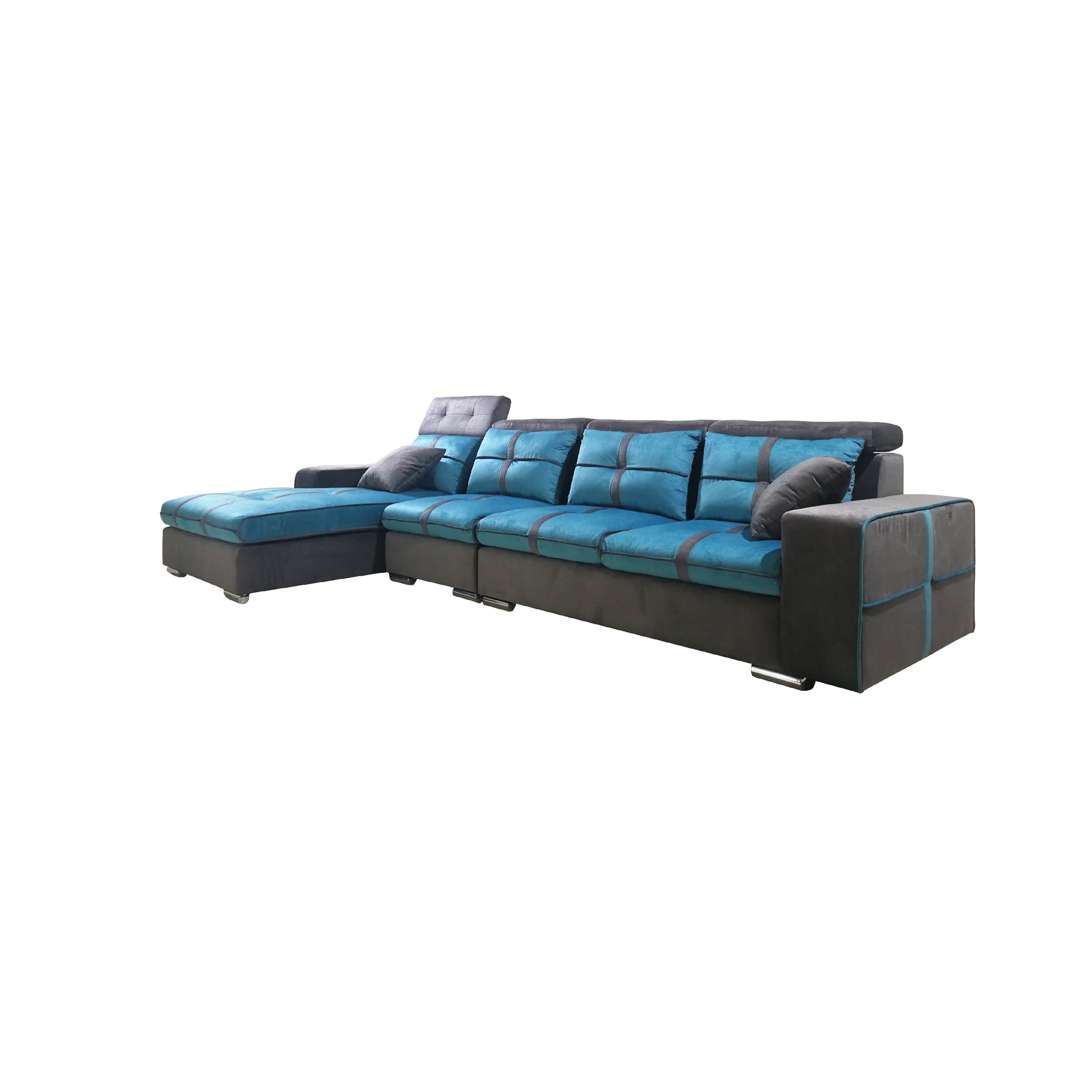 The seating experience is defined by comfortable back and bottom seat support, complemented by firm and plush pillows for a balanced, luxurious feel. Anchoring the design are low couch metal legs, providing a sleek, elevated silhouette and maximum structural stability. Available in Assorted Colours, this L-shape sofa is the perfect blend of professional craftsmanship and daily functional comfort.
