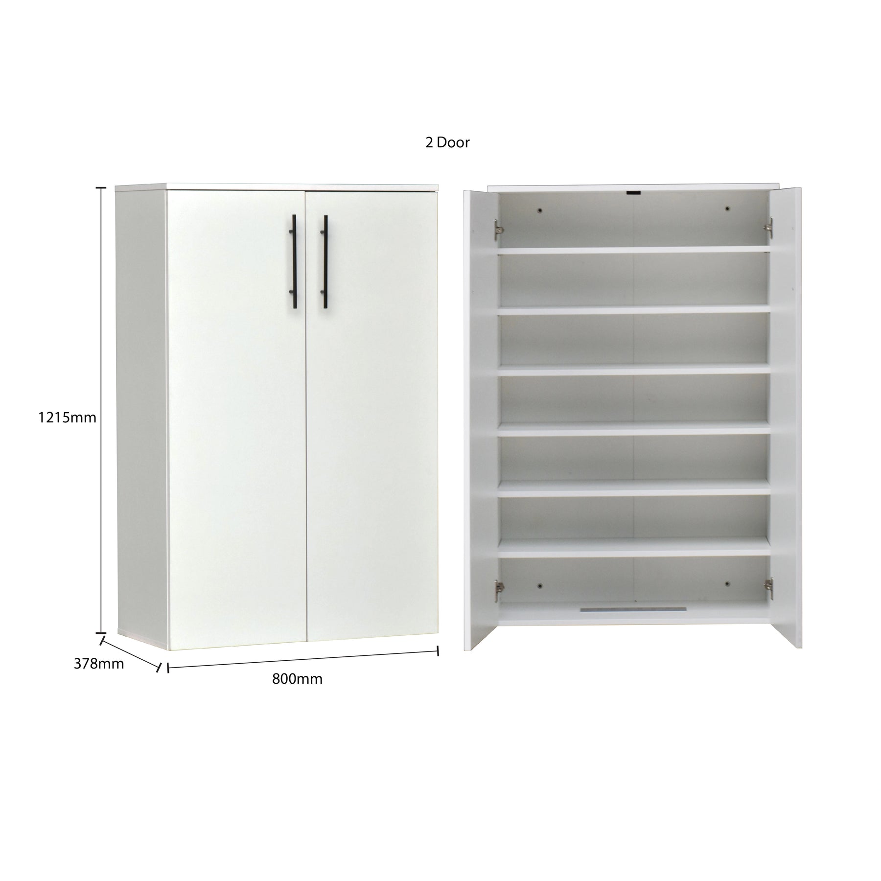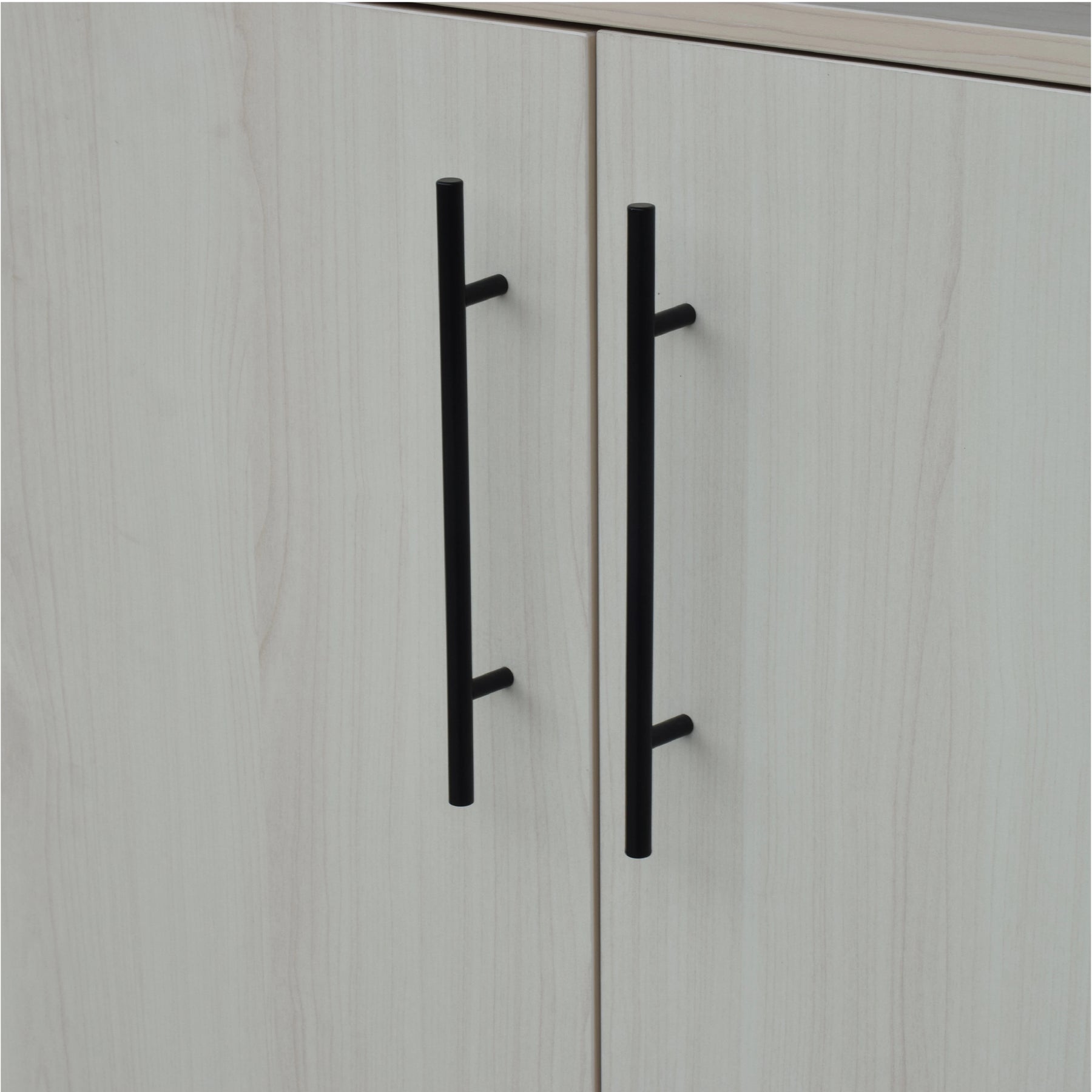 Engineered for high-capacity storage, the cabinet interior features seven tiers of spacious shelving, providing ample room for diverse footwear collections. The design incorporates adjustable shelf pins, allowing you to easily customize the height of each level to accommodate everything from low-profile sneakers to taller boots. To maintain a fresh environment, the unit includes a built-in ventilation grille at the base to promote airflow and reduce odors. The doors are accented with industrial-style black long handles for a comfortable grip and are supported by heavy-duty metal hinges for smooth, reliable daily use.
