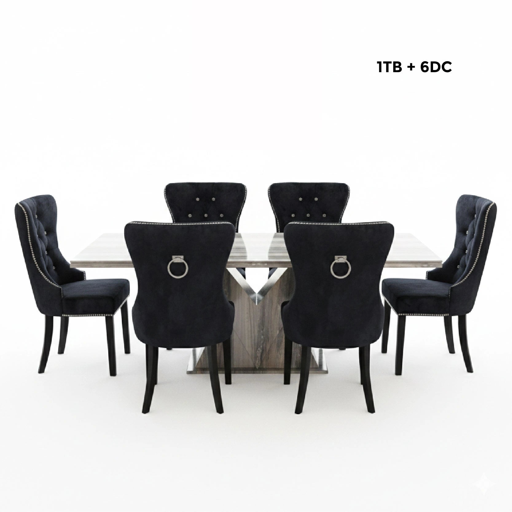 The Onyx Monarch Dining Set is the ultimate expression of executive luxury and neoclassical grandeur, designed to anchor large-scale, high-performance dining environments. This set pairs the monumental Cyrilla Marble Table with six Elize tufted chairs, creating a sophisticated, multi-tonal aesthetic that brings a unique, artistic character to your home.