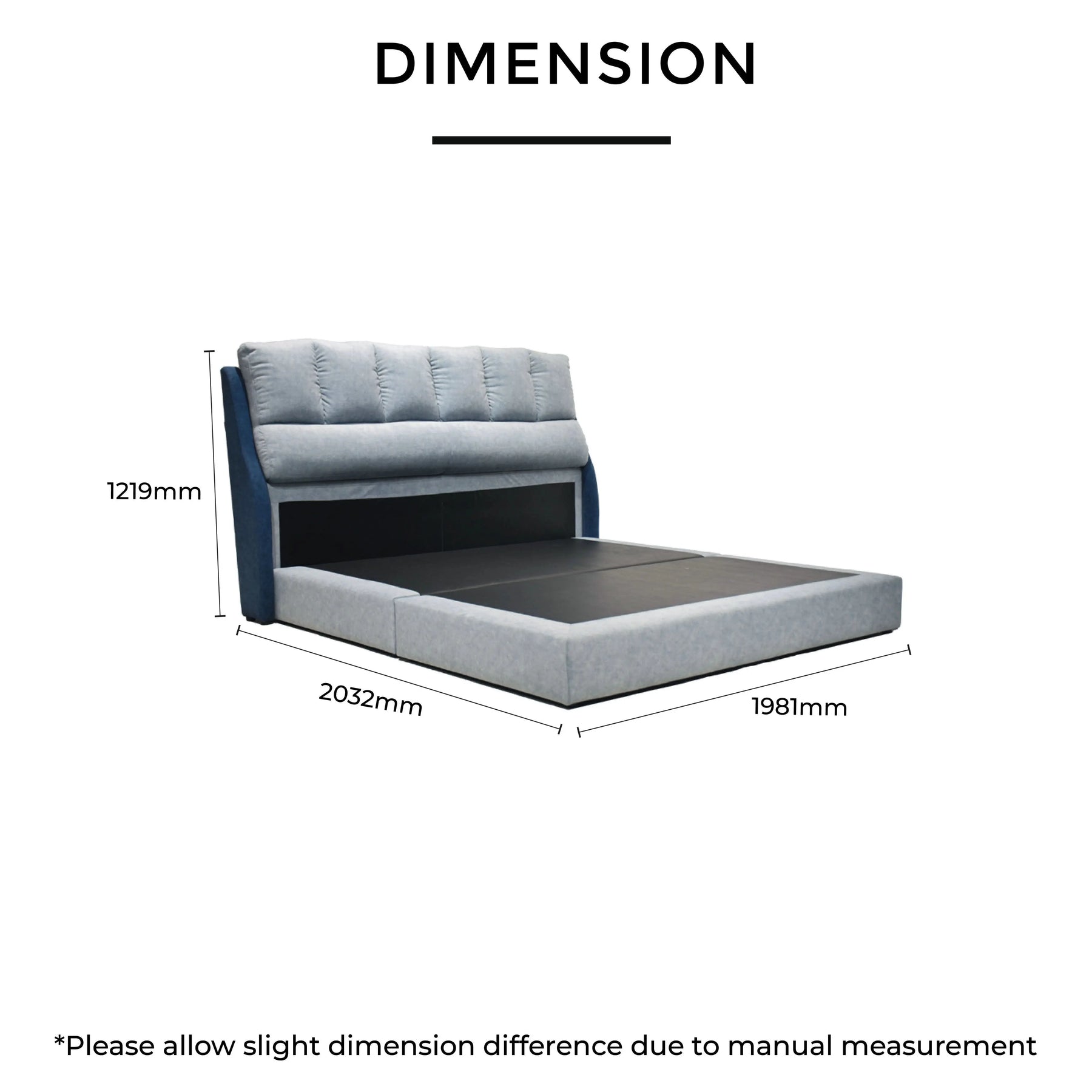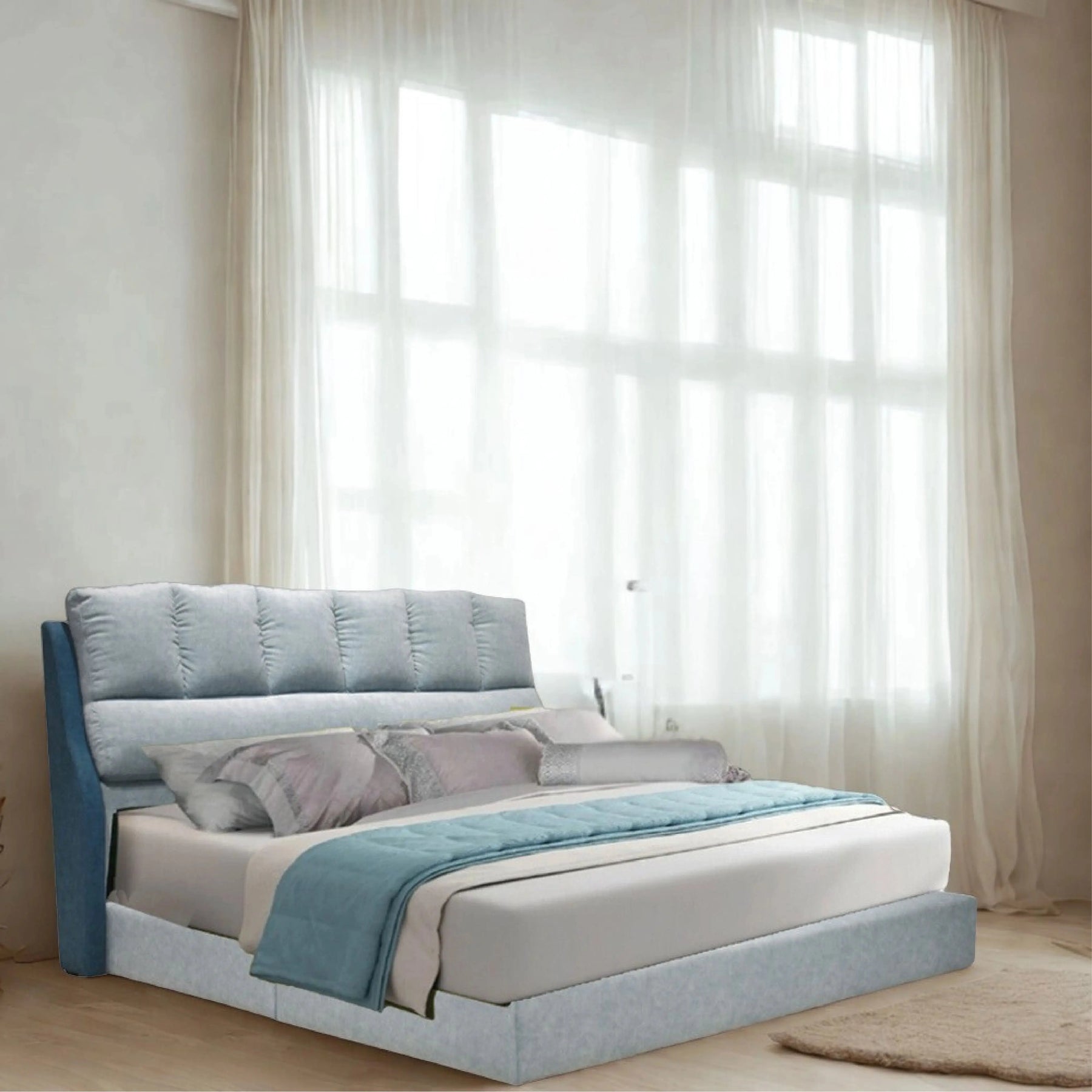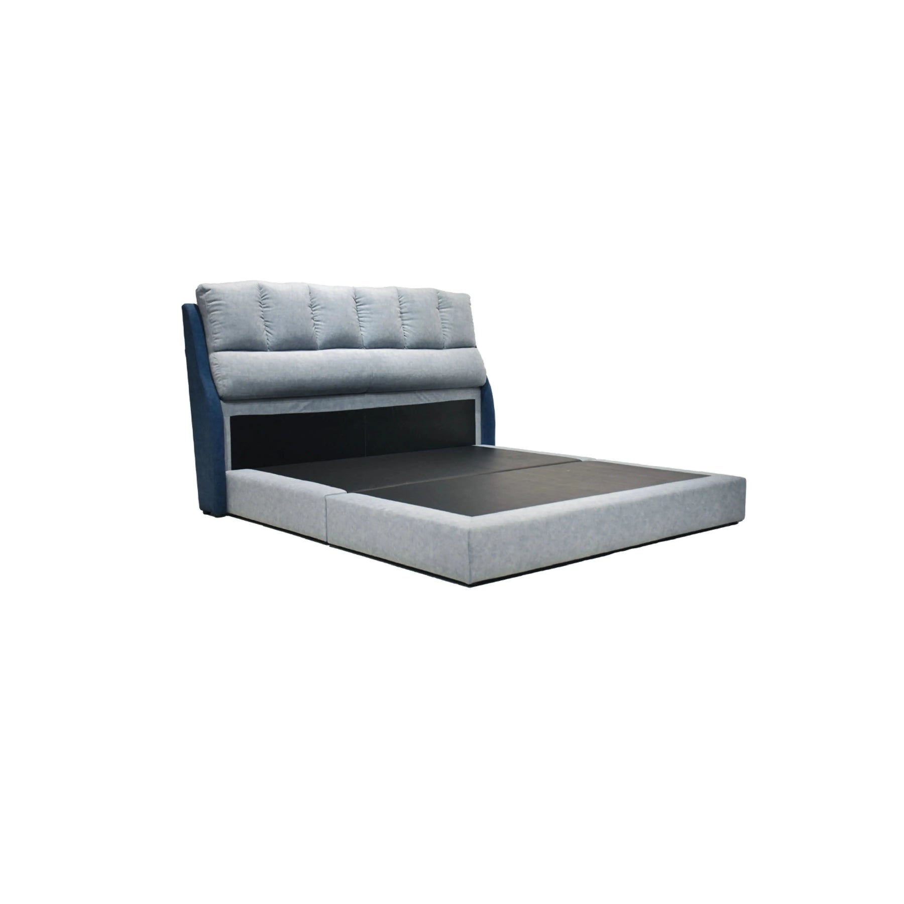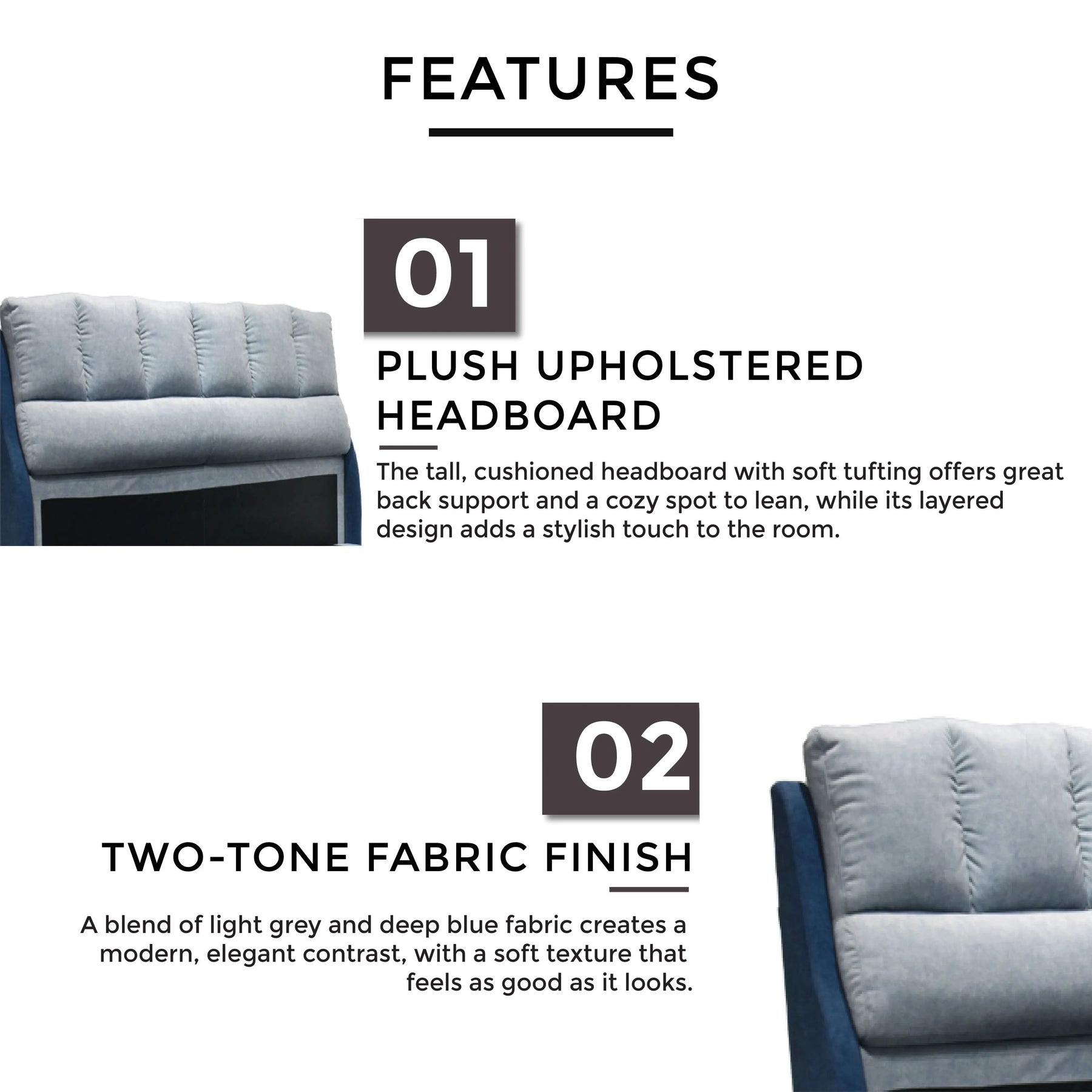 -Two-tone fabric finish in light grey and deep blue adds modern elegance