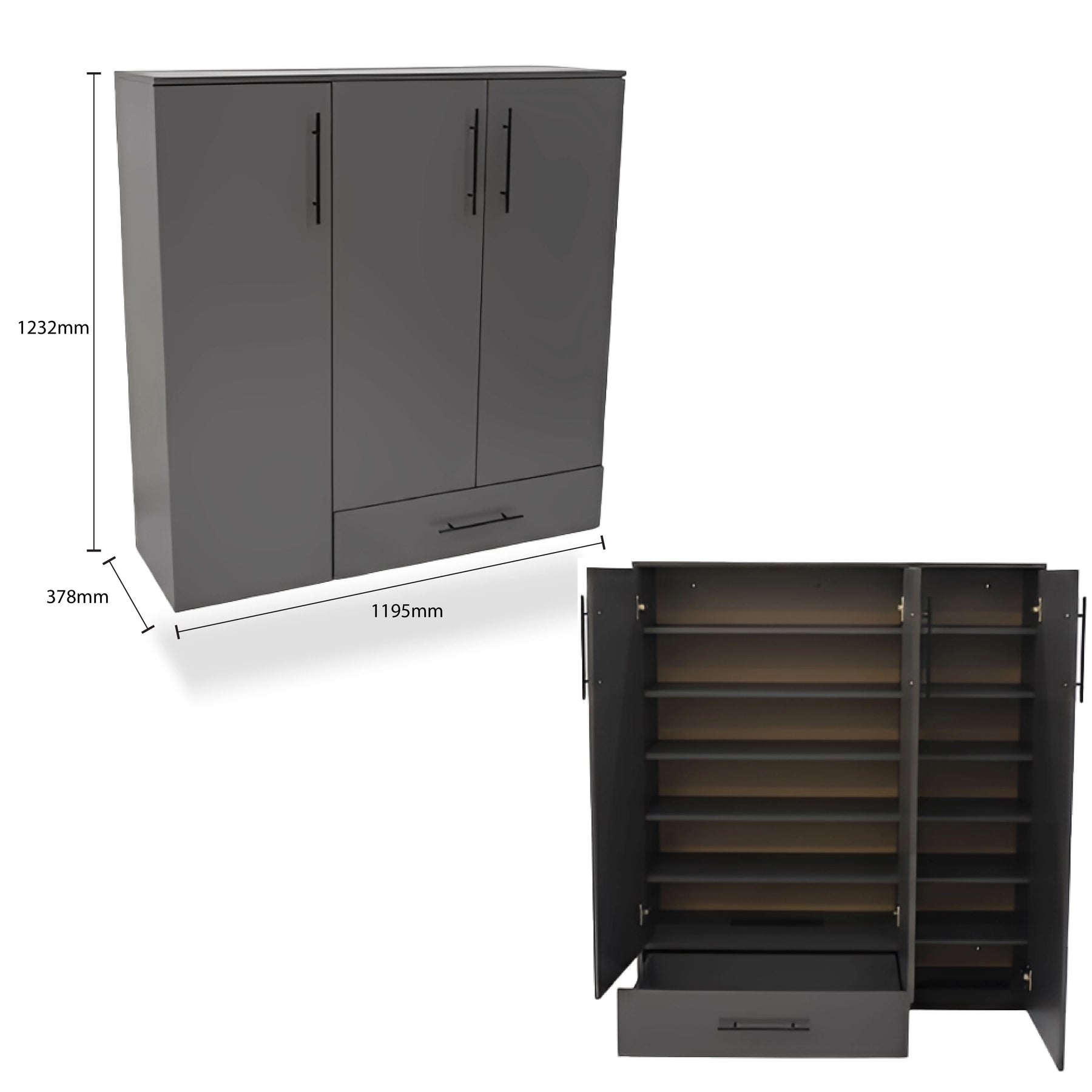 The Solefi Shoe Cabinet is a premium, high-capacity storage solution designed for modern homes that prioritize both style and organization. Featuring a sophisticated Grey finish, this wide cabinet serves as a functional statement piece that keeps your entryway clutter-free while maintaining a contemporary, minimalist look.