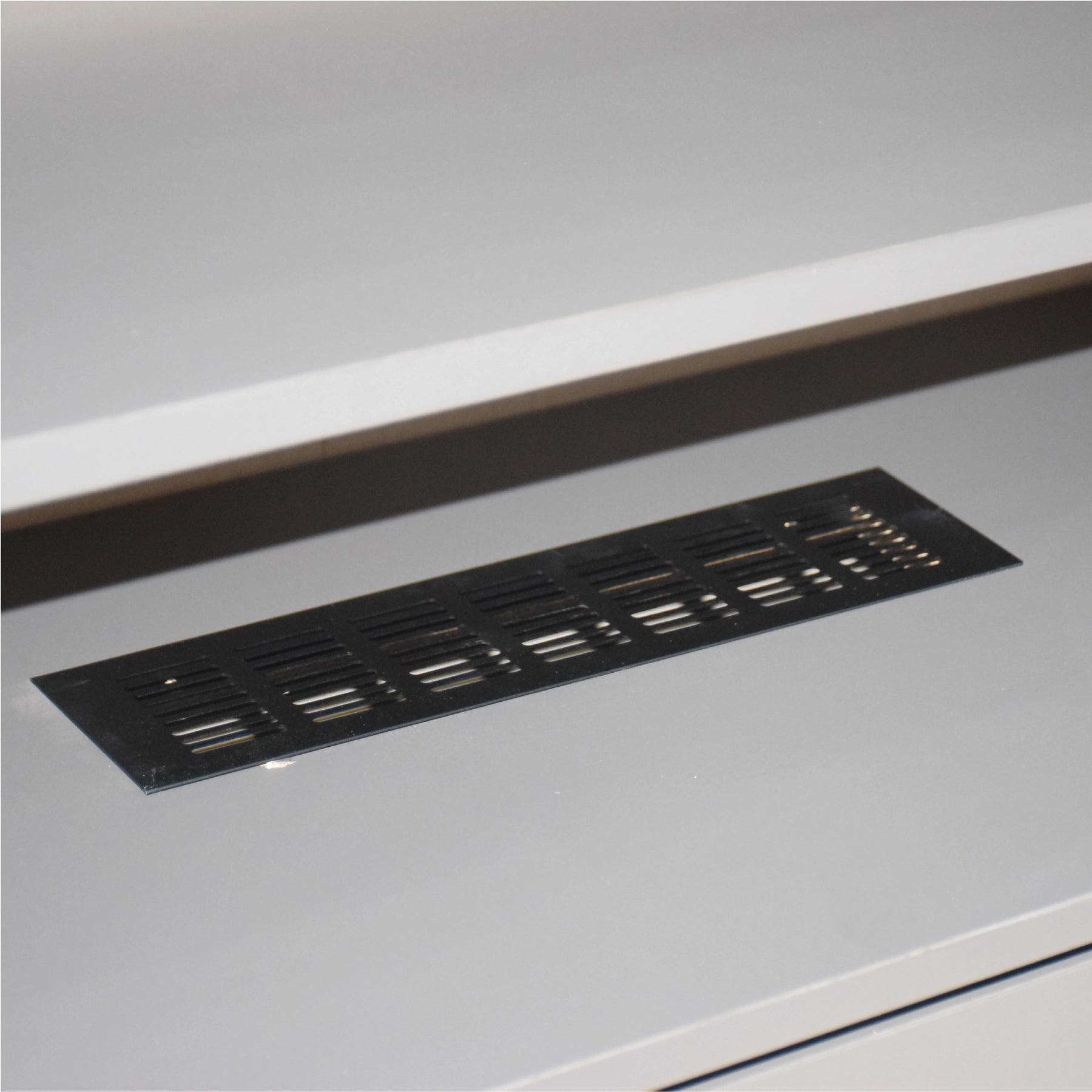 Engineered for extensive footwear collections, the cabinet features a triple-door design that opens to reveal seven spacious storage tiers. This expansive interior provides ample room to systematically arrange shoes for the entire household. To ensure a fresh environment, the unit includes a built-in ventilation grille at the base to promote essential airflow and reduce odors. For a sleek and hardware-free aesthetic, the doors are equipped with integrated J-pull handles, while heavy-duty metal hinges ensure smooth and reliable daily operation. Crafted from high-quality Melamine, the Solefi Shoe Cabinet is built for long-lasting durability and easy maintenance. The structure is elevated by angular black metal legs, providing robust stability and allowing for easy cleaning of the floor area underneath.