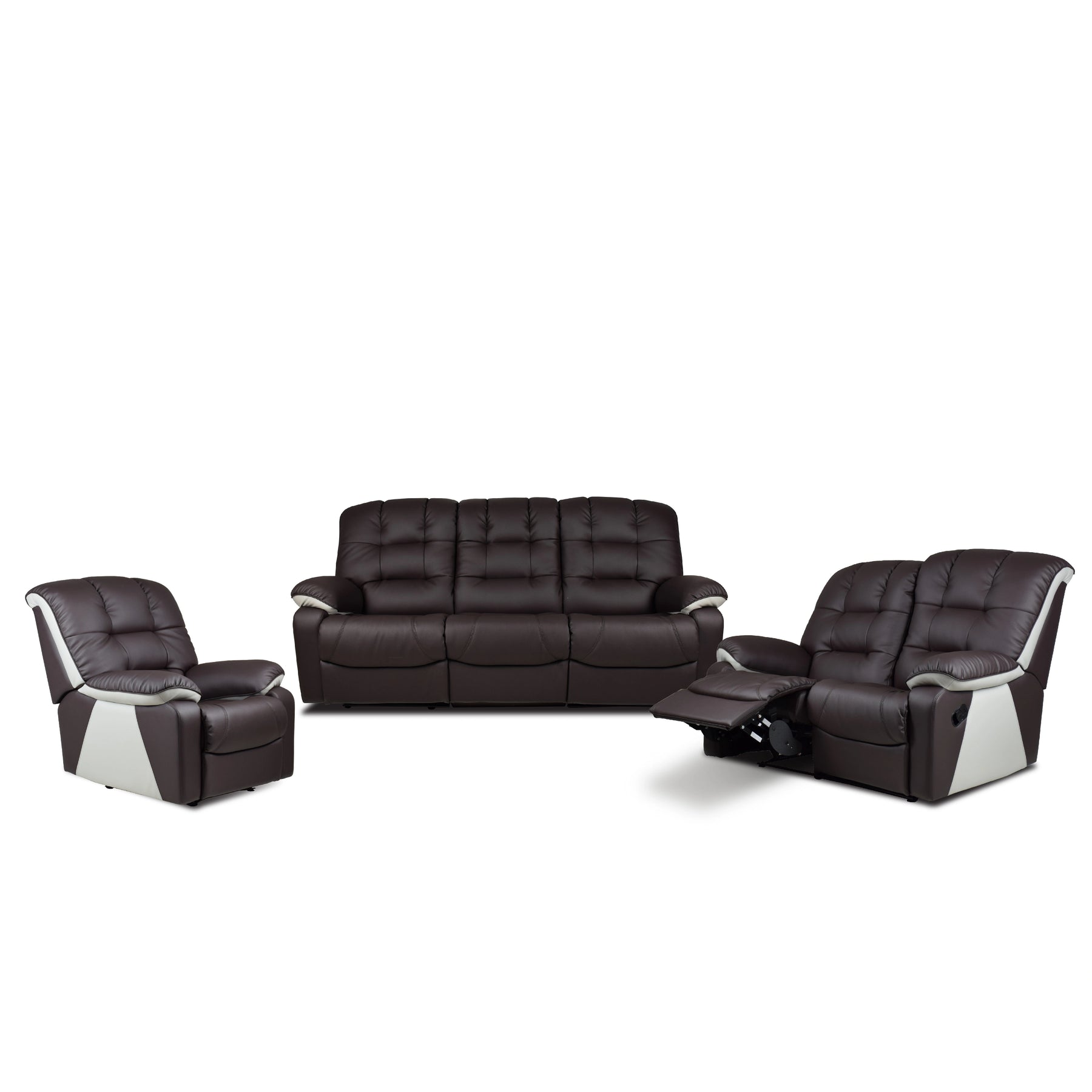 The Sorento 1+2+3 Seater recliner set is the ultimate choice for those who value long-lasting durability and premium comfort. This model is built with a stable recliner mechanism with heavy load capacity, ensuring a smooth and secure transition into your favorite lounging position every time. The design features wide and firm back support to provide excellent lumbar stability, complemented by comfortable armrests that offer a soft, plush surface for your arms. Every detail is finished with exquisite sewing and stitching work, adding a sophisticated look to the durable upholstery. Relaxation is made simple with the easy and effortless pull-out recliner handle, making the Sorento the perfect addition to any modern family home.